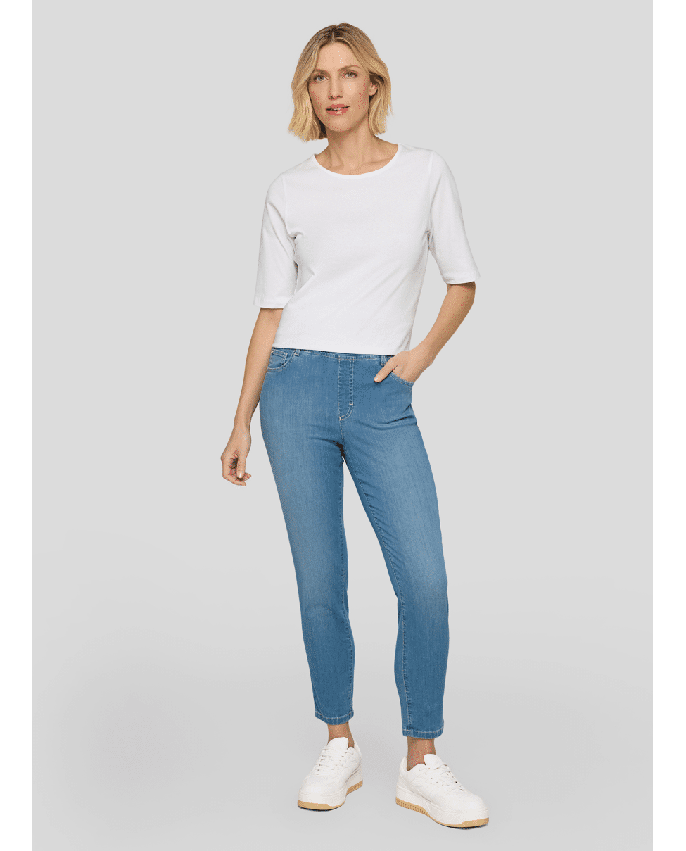 Skinny fit damesjeans van Rabe met elastische tailleband een 5-pocket model