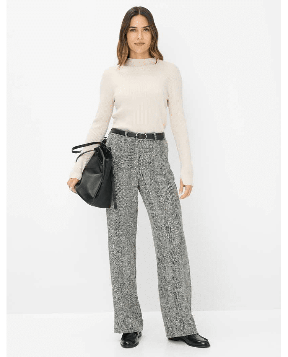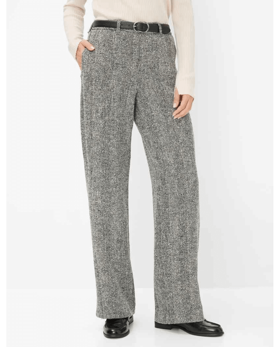 STYLE.MAINE – Dames Palazzobroek van Brax met bouclé-materiaal, visgraat motief en wijde pijpen