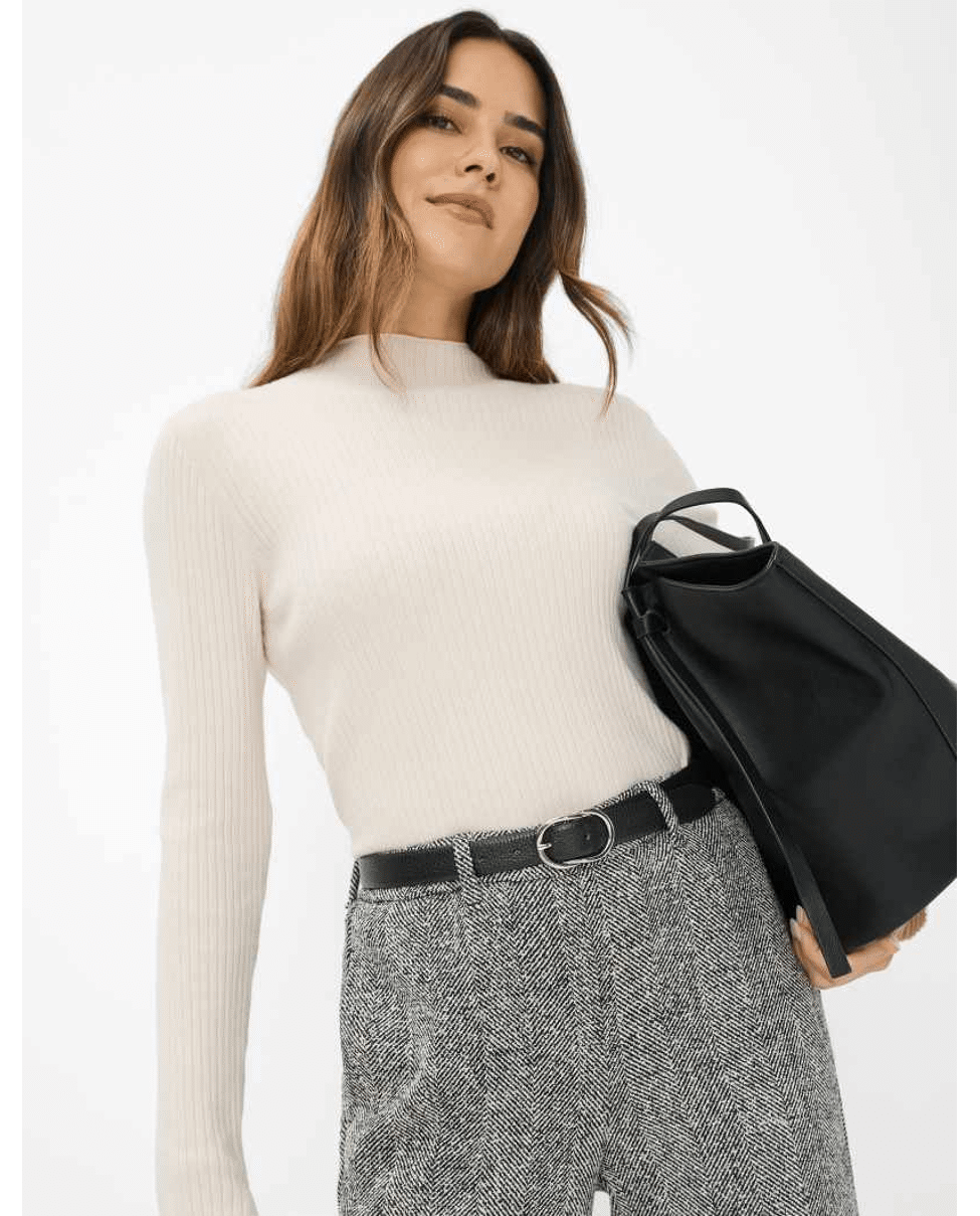 Met de soepel vallende pijpen biedt de palazzobroek in STYLE MAINE een moderne interpretatie van klassieke vrouwelijkheid. De strakke lijnen met een wijde silhouet laten het ontwerp bijzonder puur ogen en vestigen de aandacht op het verfijnde bouclé-materiaal en het subtiele visgraatmotief, dat de look een subtiele retro-touch geeft.