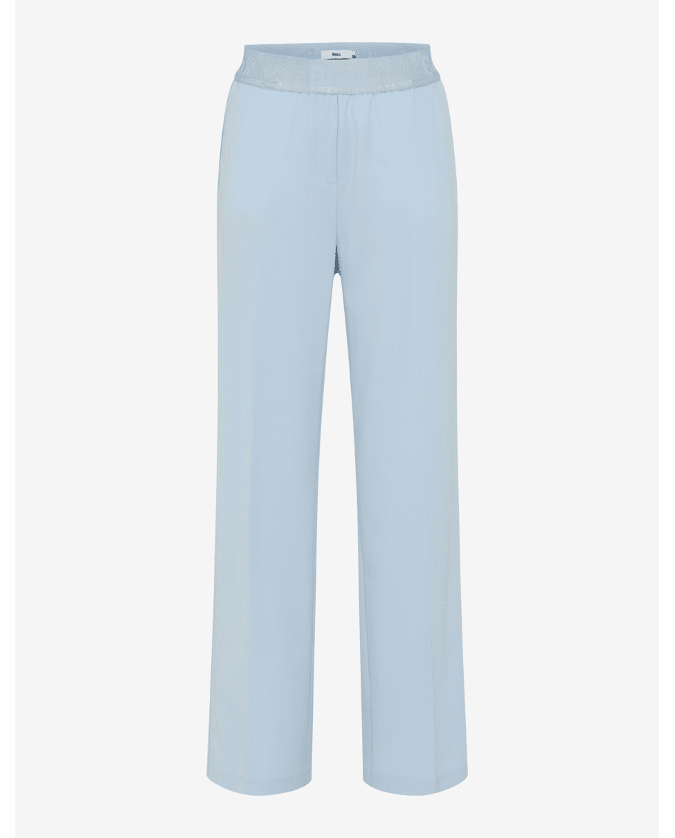 De elastische tailleband en zachte wolmix geven een luxe gevoel zonder in te leveren op draaggemak. De lichtblauwe kleur geeft de broek een frisse, moderne twist.