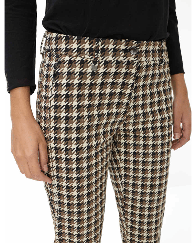 De Style Maron S broek in walnut is een moderne chino met pied-de-poule dessin. Het taps toelopende silhouet en de 7/8-lengte zorgen voor een eigentijdse en vrouwelijke uitstraling.