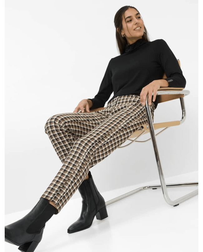 STYLE.MARON S – 7/8 Chino damesbroek van Brax met ruit patroon en lage taille
