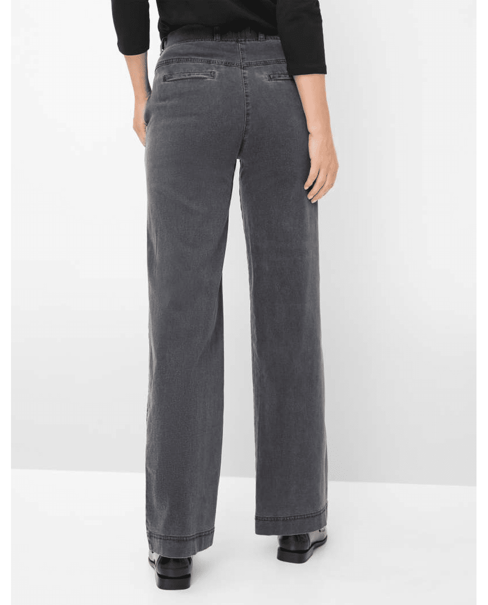 De hoge taille en flared pijpen creëren een vrouwelijk silhouet. De grijze wassing maakt ‘m makkelijk te combineren met zowel lichte als donkere tinten.