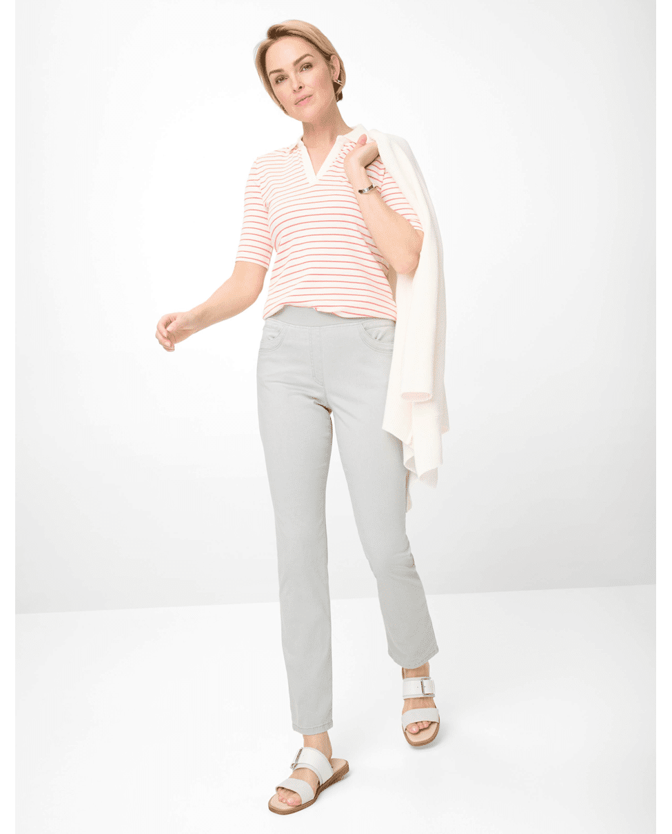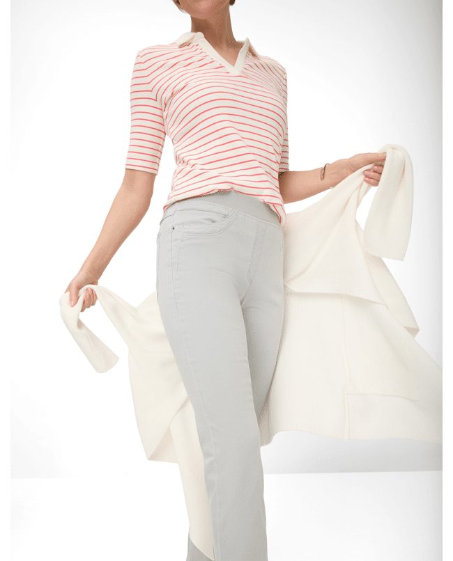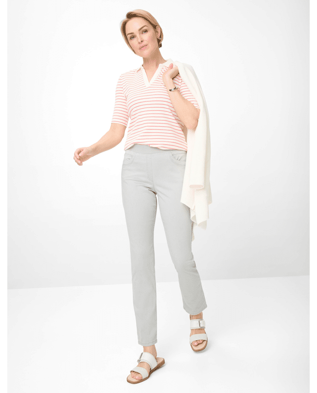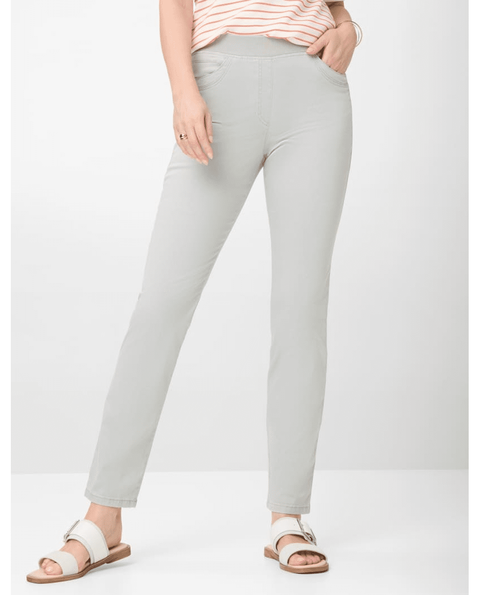 De STYLE PAMINA FUN van Raphaela is een echte allrounder voor dames. Gecombineerd met sneakers of laarzen maakt deze broek elke outfit compleet. De Slim Fit damesbroek met hoge taille heeft een slanke snit en valt flatterend langs het been.