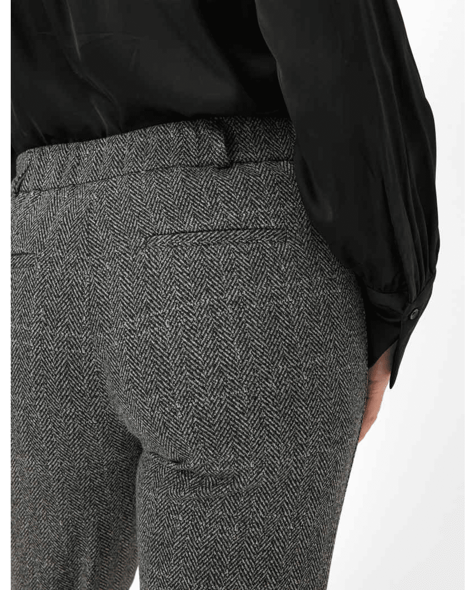 Het subtiele visgraatpatroon met lurexdetails tilt deze broek naar een hoger niveau. Perfect voor dagen waarop je er verzorgd en zelfverzekerd uit wilt zien.