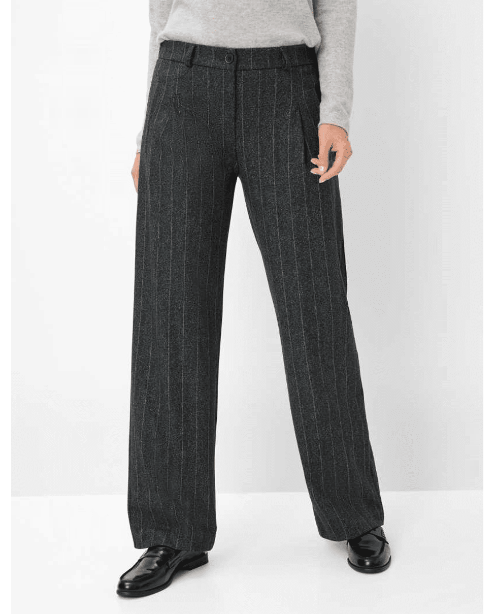 Style Peggy Flared – Damesbroek van Raphaela by Brax met krijtstreep, jersey stof, en wijd silhouet