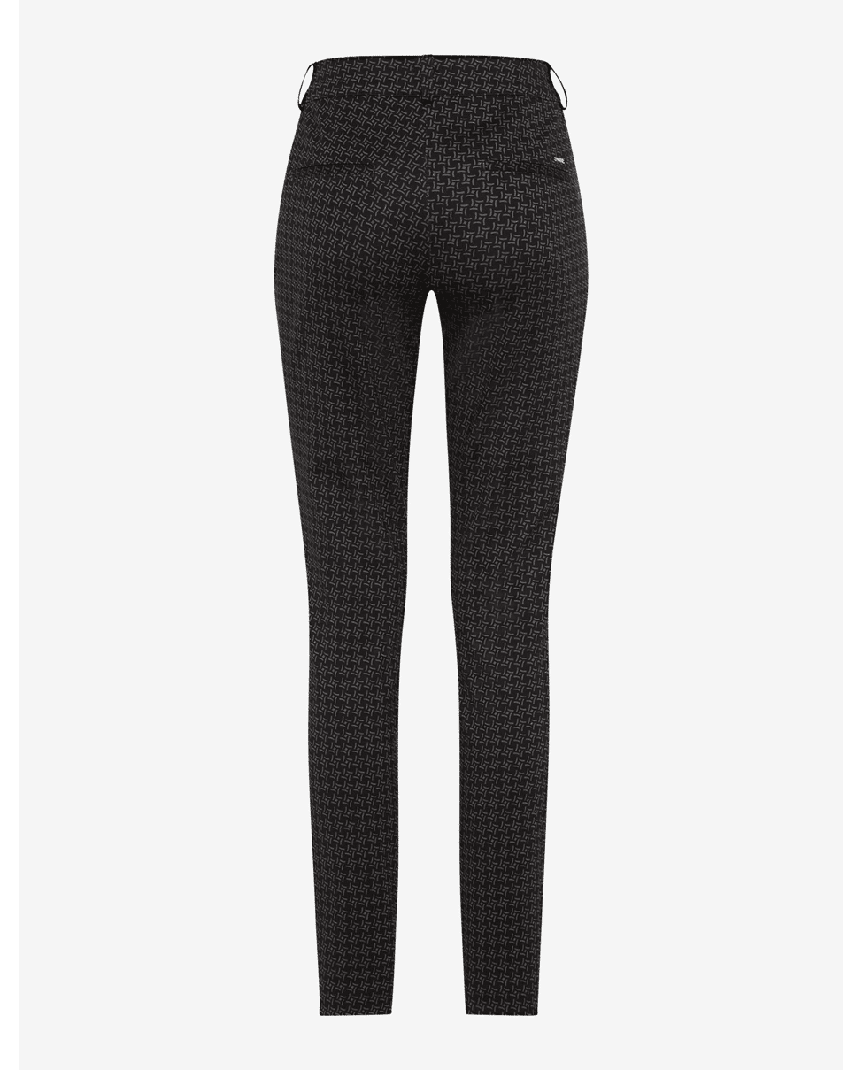 Slim fit broek met een subtiele all-over structuurprint in zwart. Gemaakt van een comfortabele stretchkwaliteit die mooi aansluit. Ideaal voor een stijlvolle, maar easy-going herfstlook.