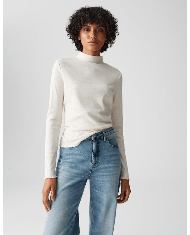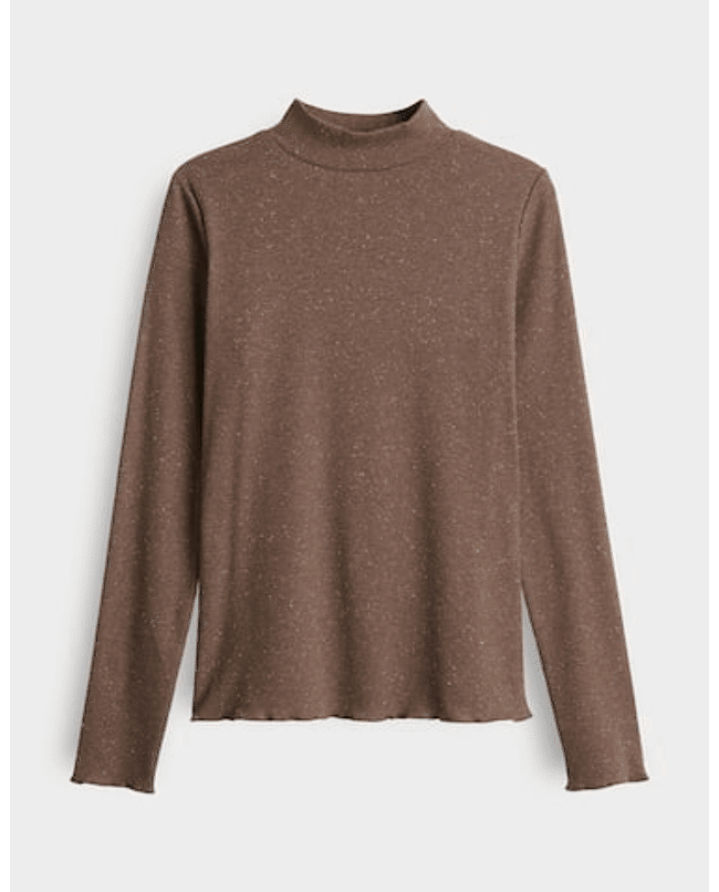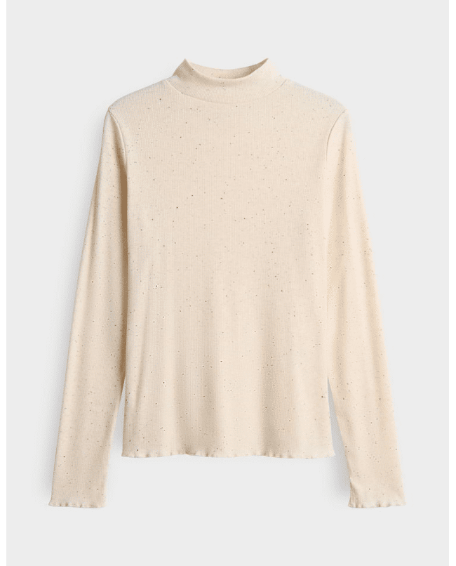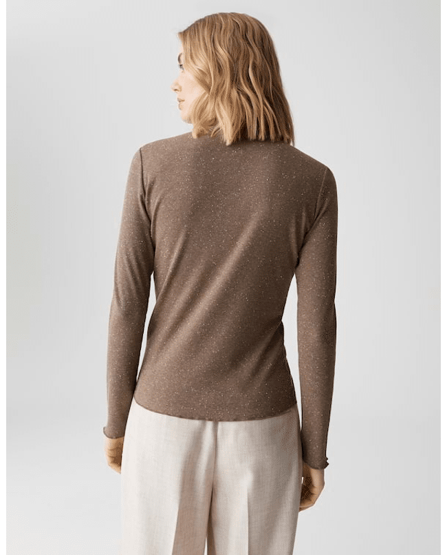 De gekartelde boorden en fijne ribstructuur geven deze basic een vrouwelijke twist – stijlvol in zijn eenvoud.