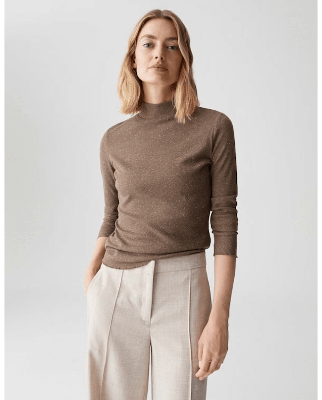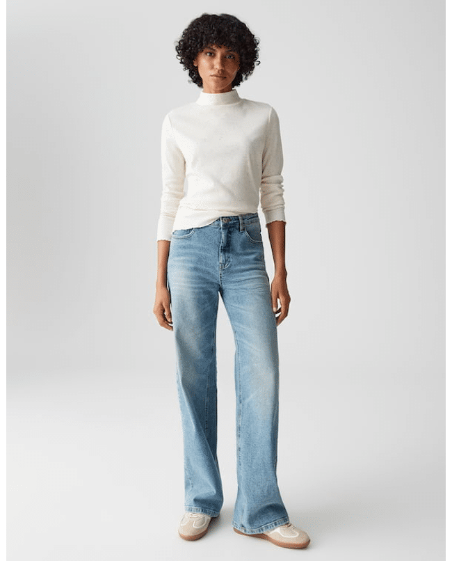 SUHANNA CURLY - Dames shirt van Opus met fijn geribde structuur, turtleneck en lange mouwen
