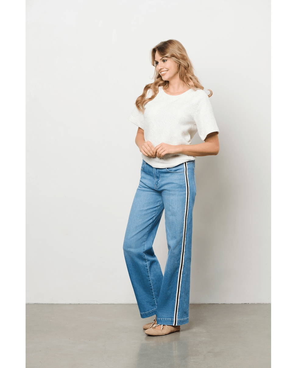 De ton-sur-ton bloemenstructuur geeft deze top een verfijnde twist. Mooi op een jeans of als set met een lichte pantalon.