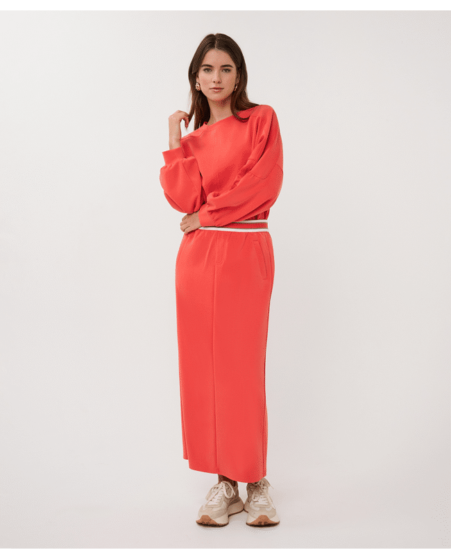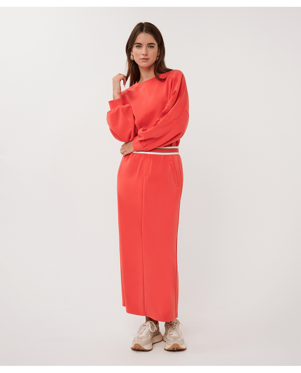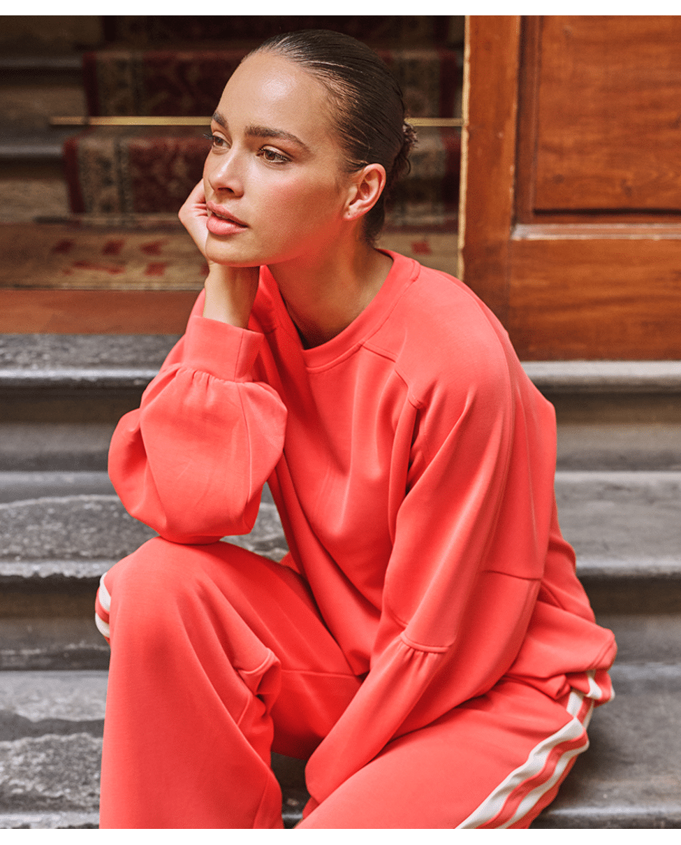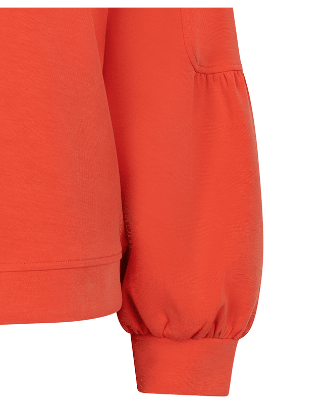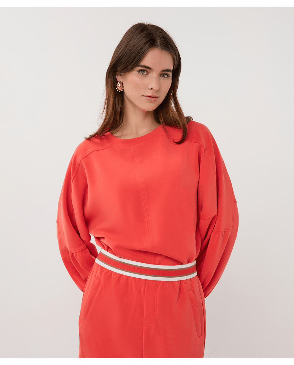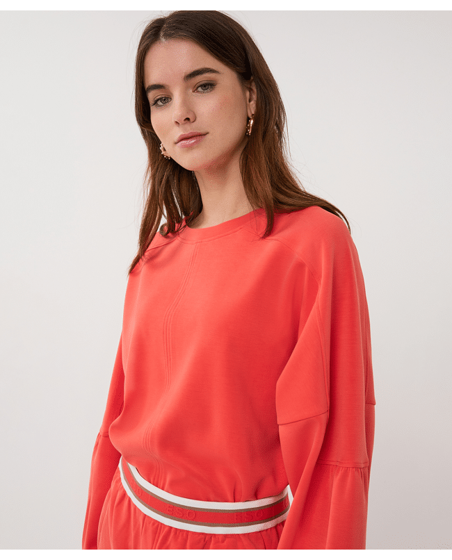 Zachte trui met speelse mouwdetails, uitgevoerd in een soepele modalmix. De felle kleur Chili Red geeft dit comfortabele item een energieke uitstraling – perfect voor het voorjaar.