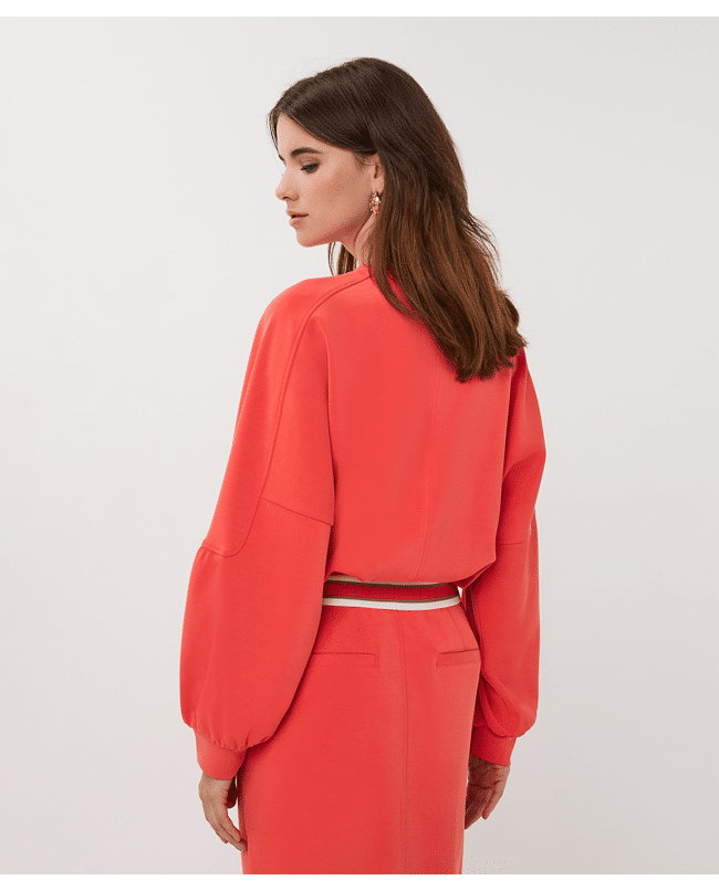 De combinatie van een levendige kleur en verfijnde mouwen maakt deze sweater een echte feelgood basic.