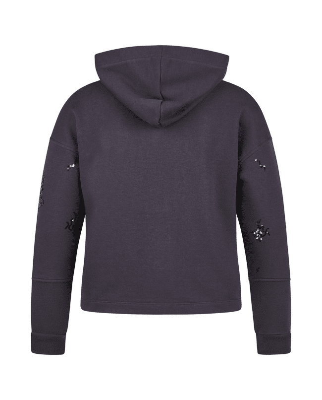 De combinatie van comfy en glamour maakt deze hoodie verrassend veelzijdig. Leuk met jeans of juist als contrast op een nette broek.