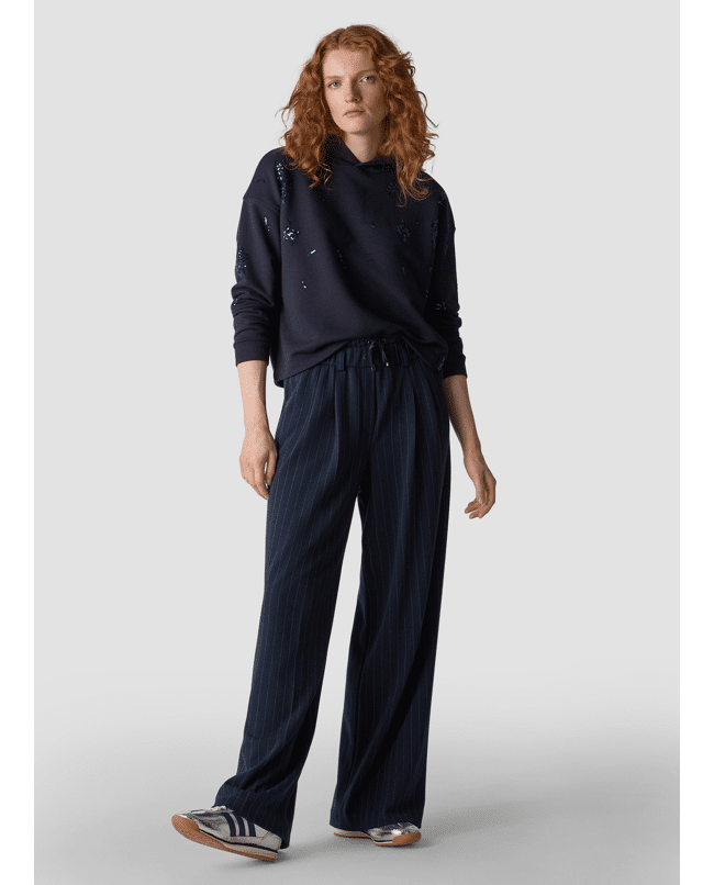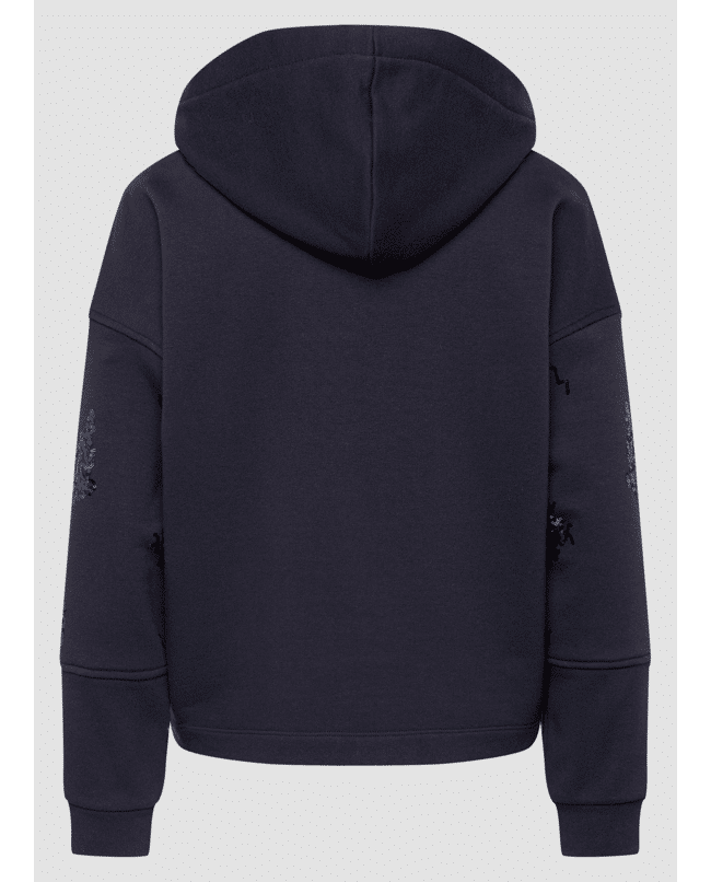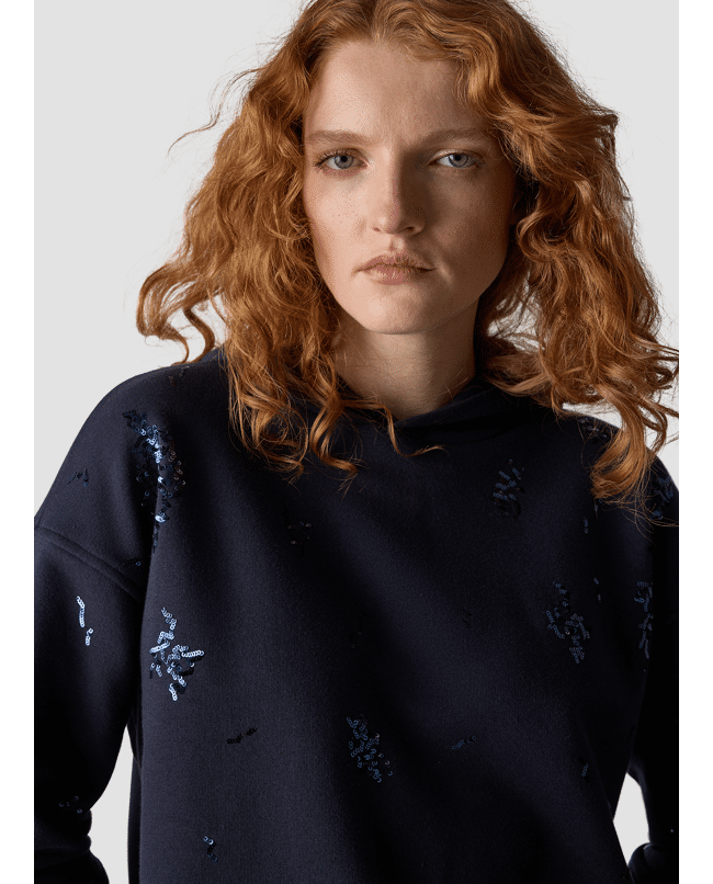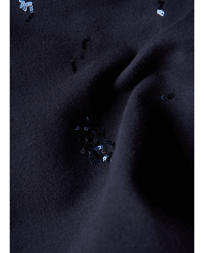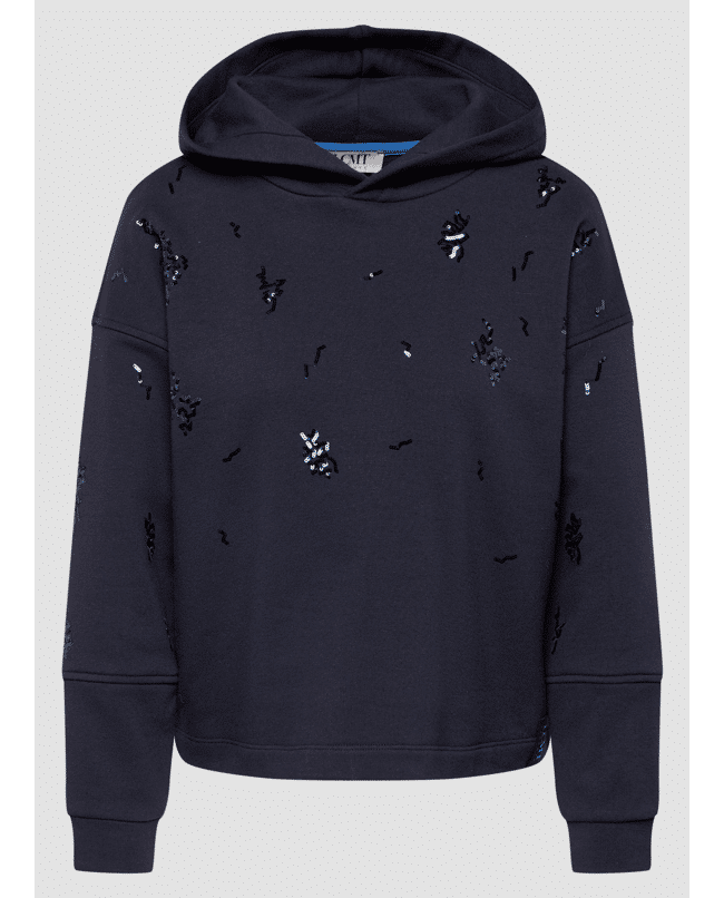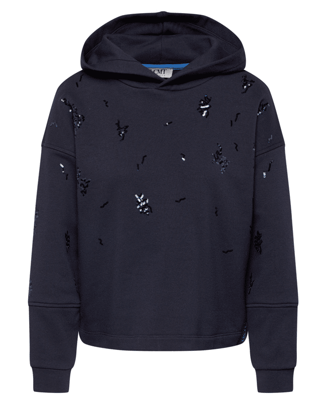 Zachte hoodie met pailletten – stijlvol en comfortabel voor elke dag. De donkerblauwe kleur en subtiele glansdetails maken 'm perfect voor casual momenten met een twist.
