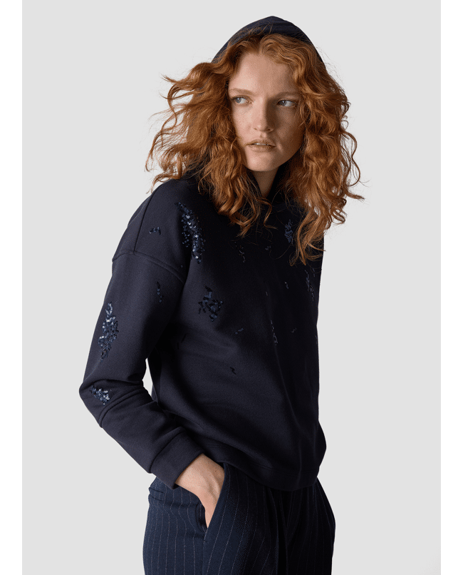 Dames sweater van LeComte met pailletten, ronde capuchon en lange mouwen