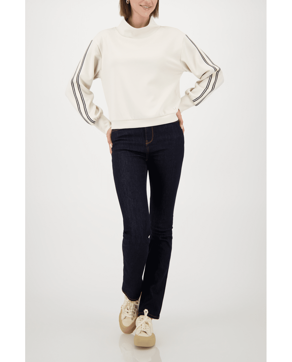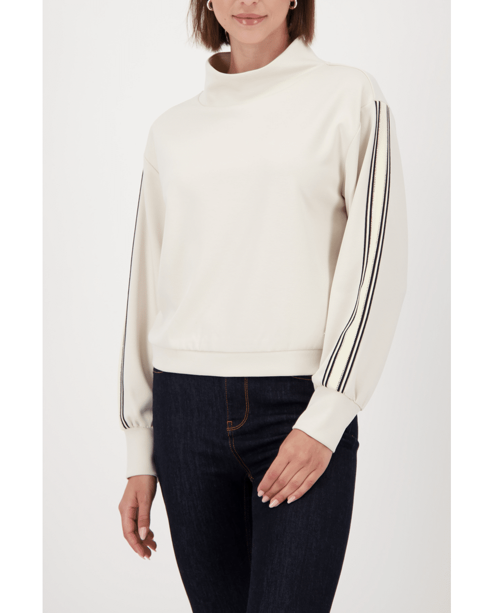 De opstaande hals en de strepen langs de mouwen geven deze top een sportieve, moderne look.