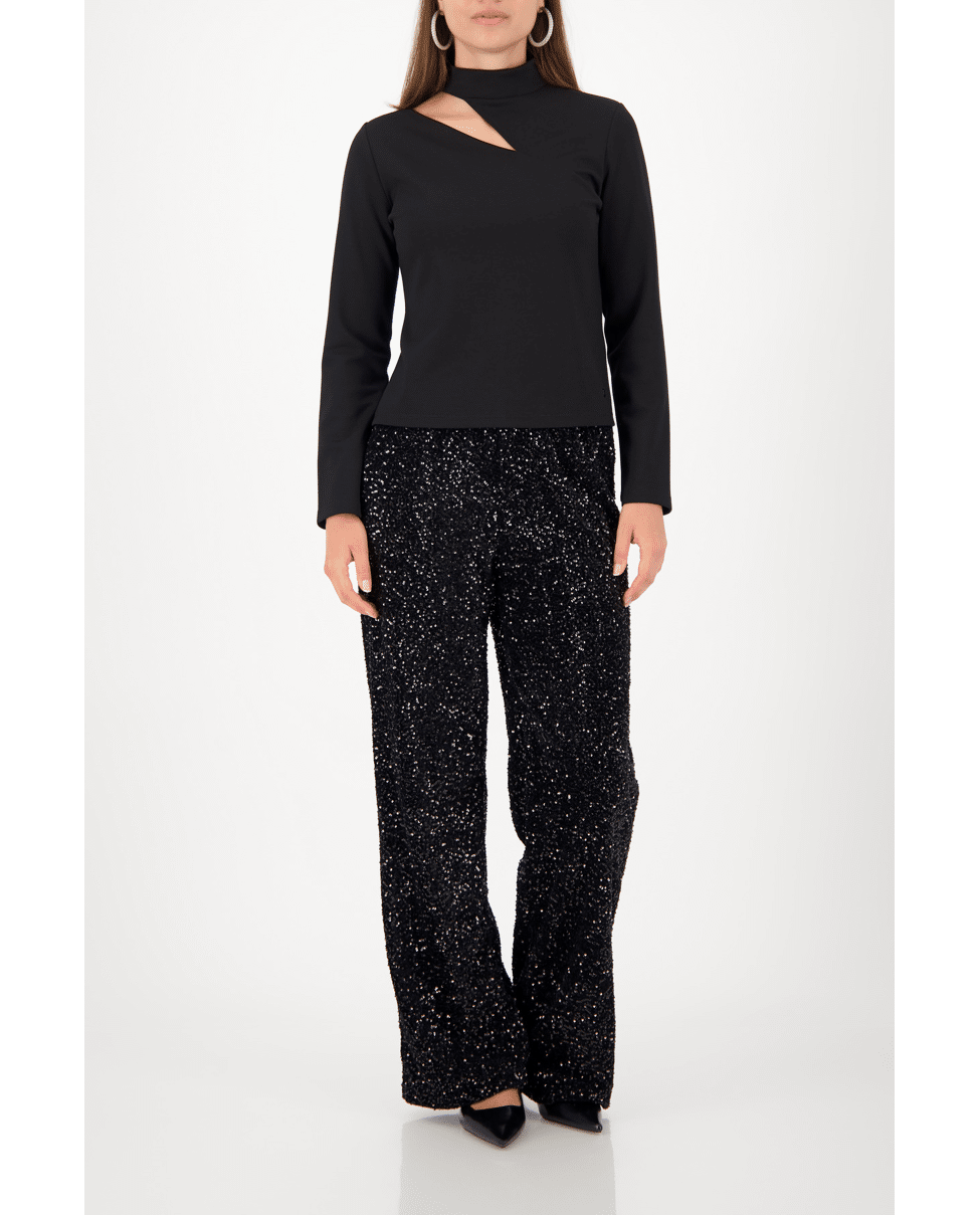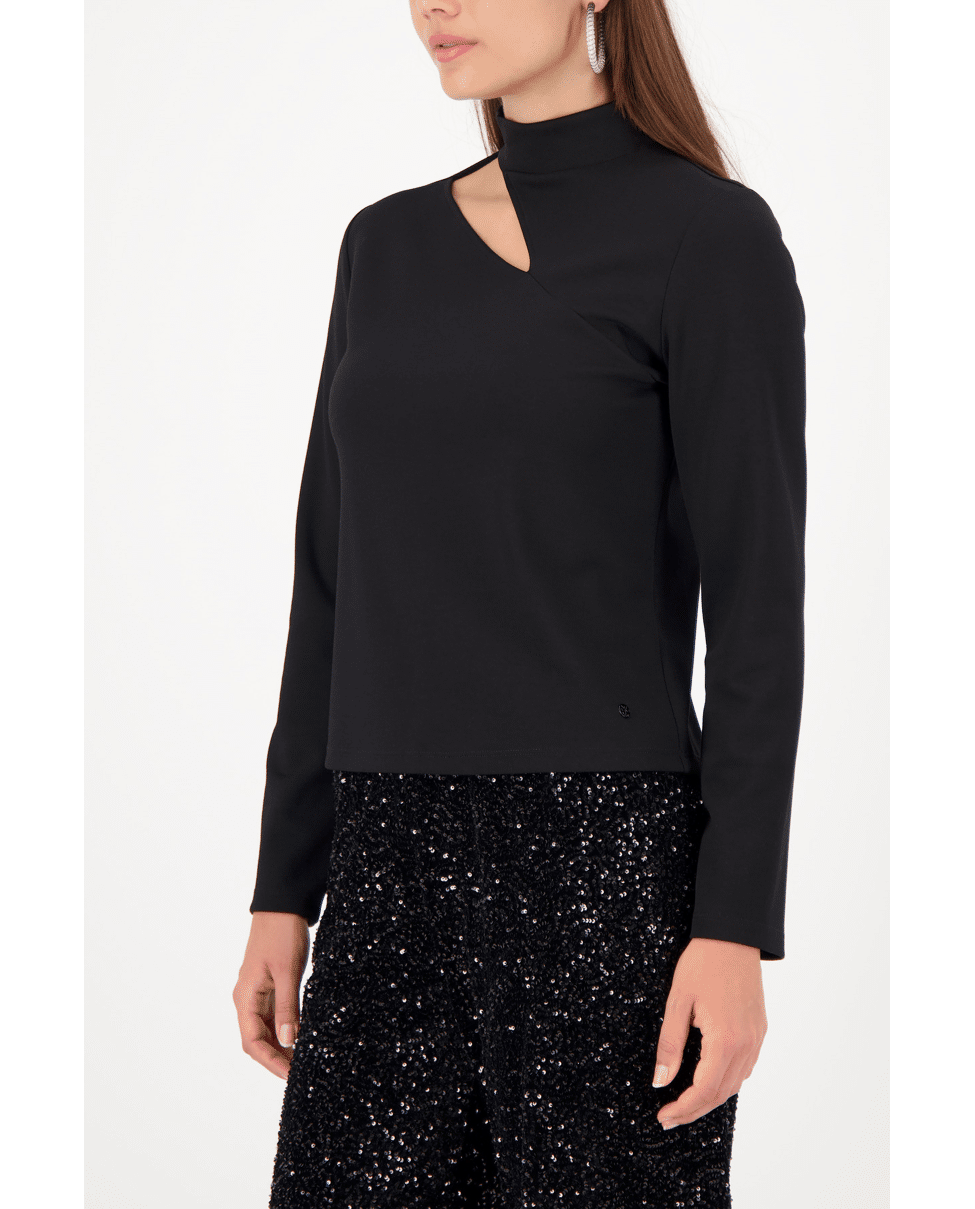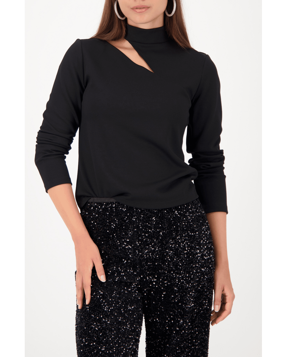 Longsleeve shirt met moderne cut-out bij de hals. Stijlvol en comfortabel tegelijk – ideaal voor een avondje uit of een feestelijk diner.