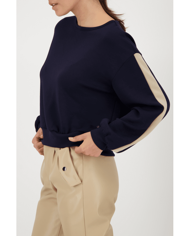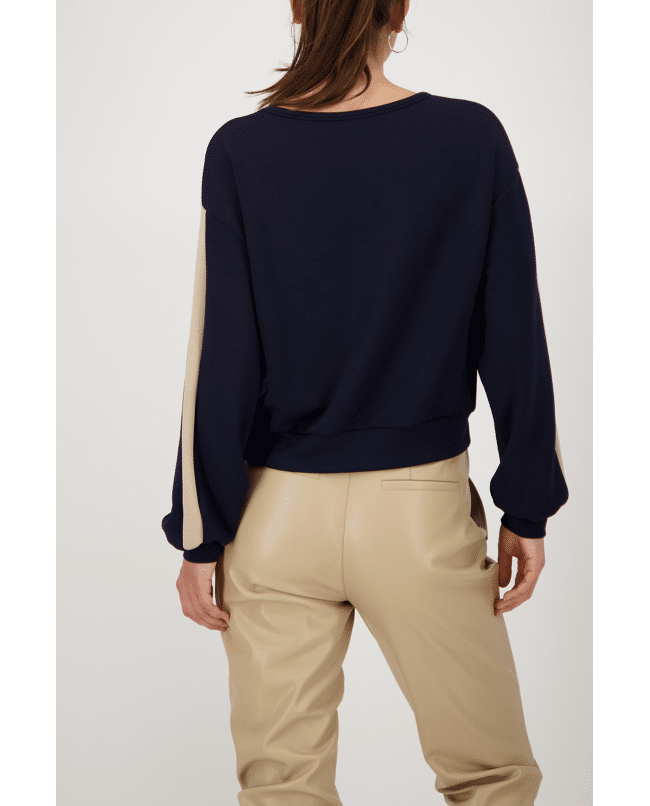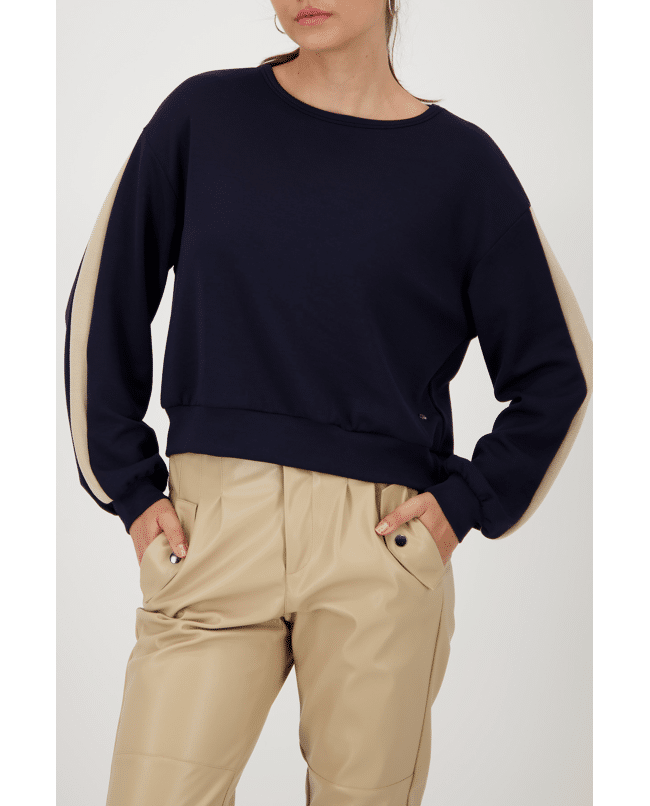 Dames sweatshirt van Monari met streep op de lange mouwen en ronde halslijn