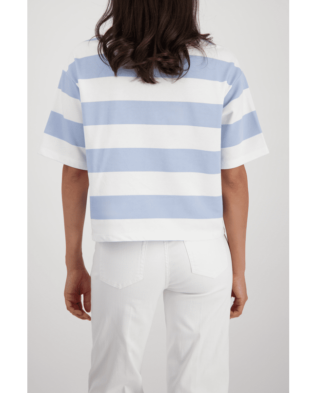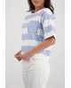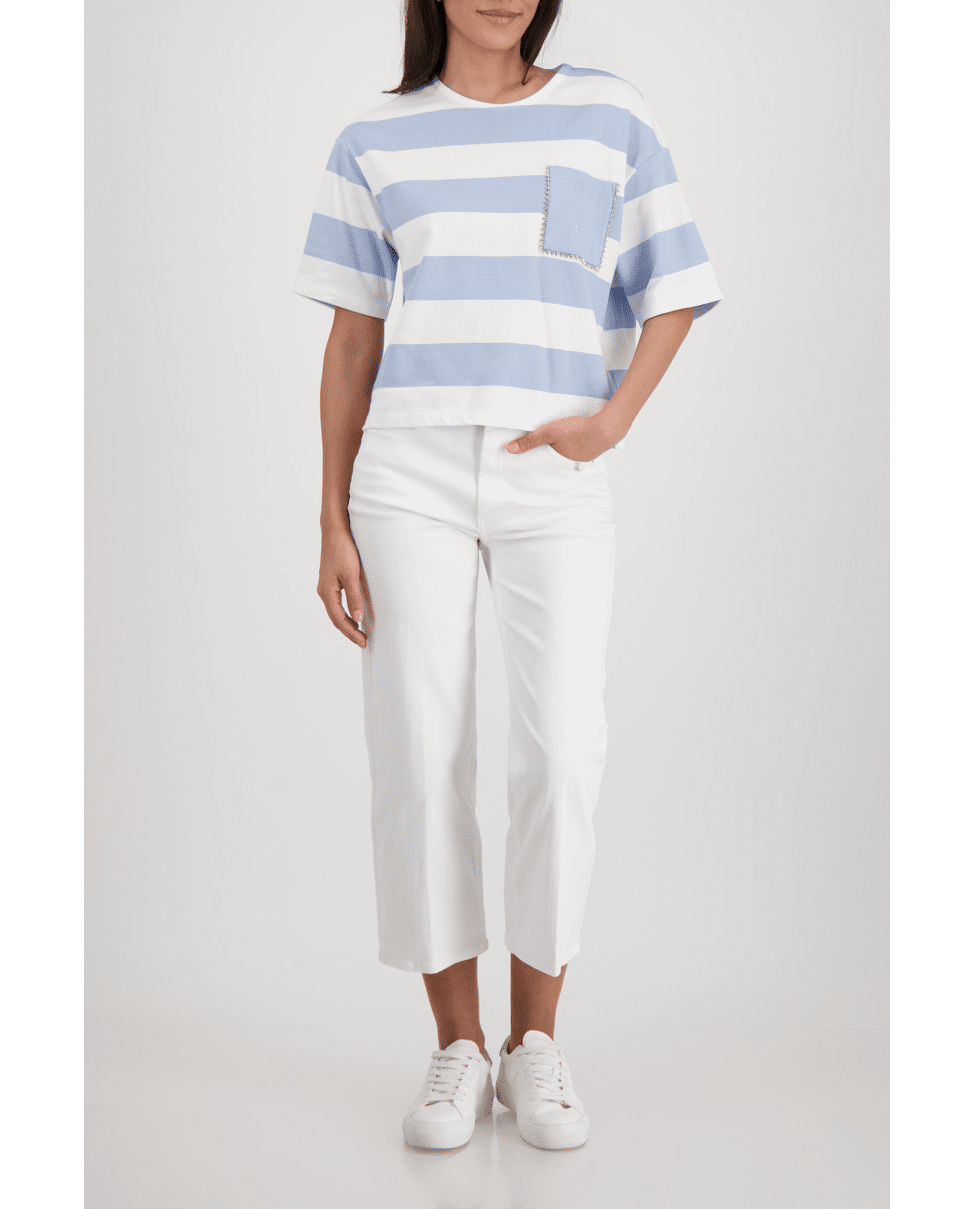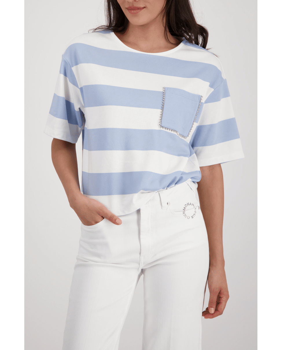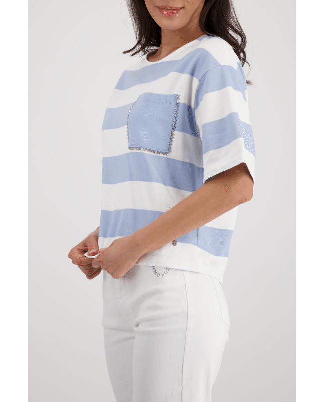 Dit gestreepte dames T-shirt met borstzak geeft je outfit een frisse, sportieve look met een subtiele sparkle. Ideaal voor casual dagen waarop je net iets extra’s wilt.