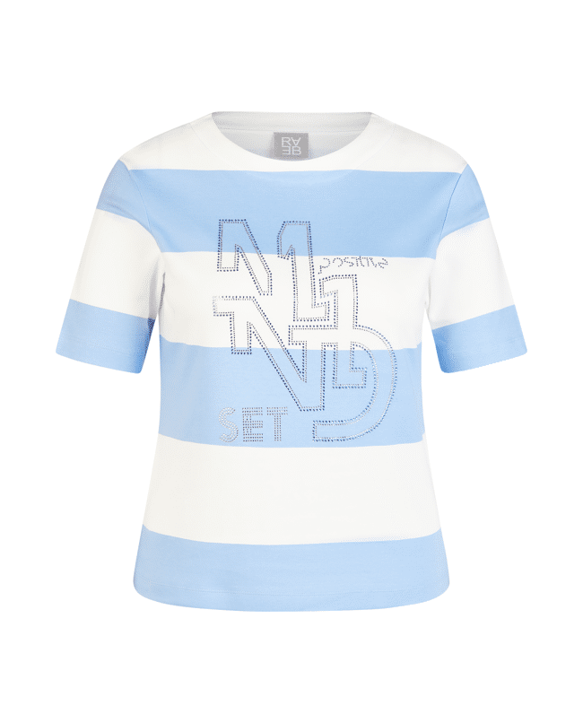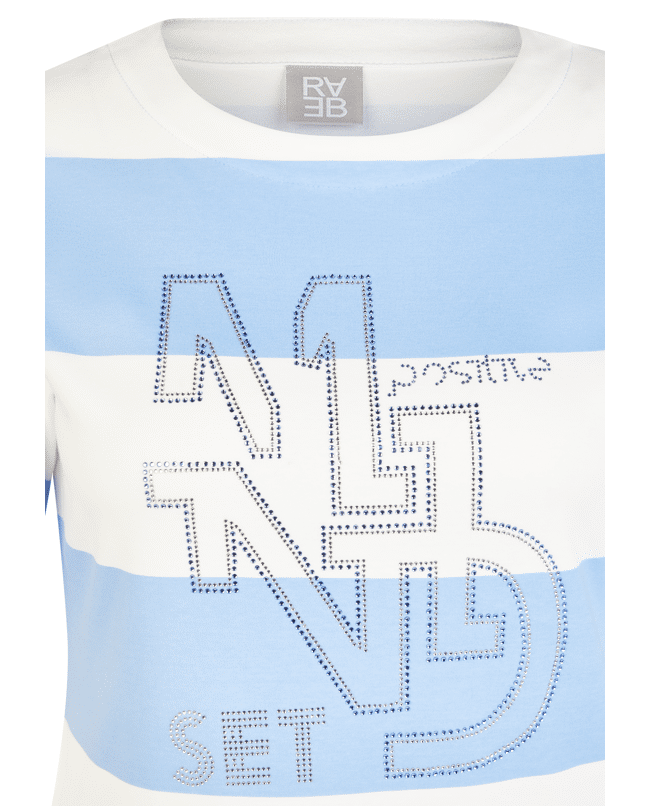 Dames sweatshirt van Rabe met brede strepen, strasdetails, ronde hals en korte mouwen