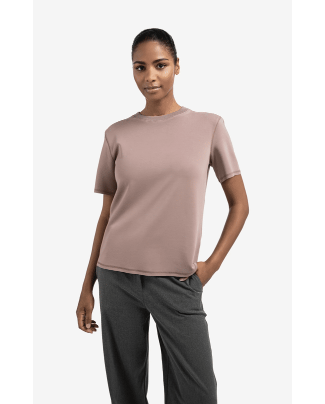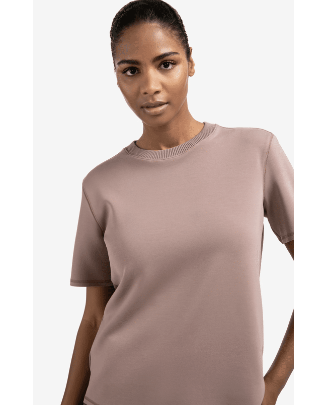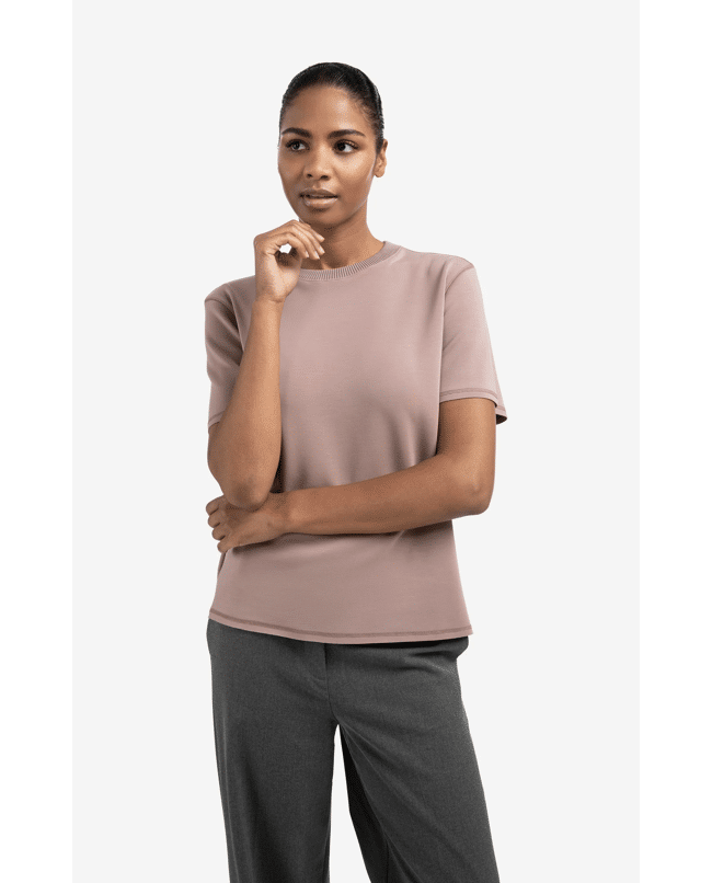 • Korte mouwen met ribdetail