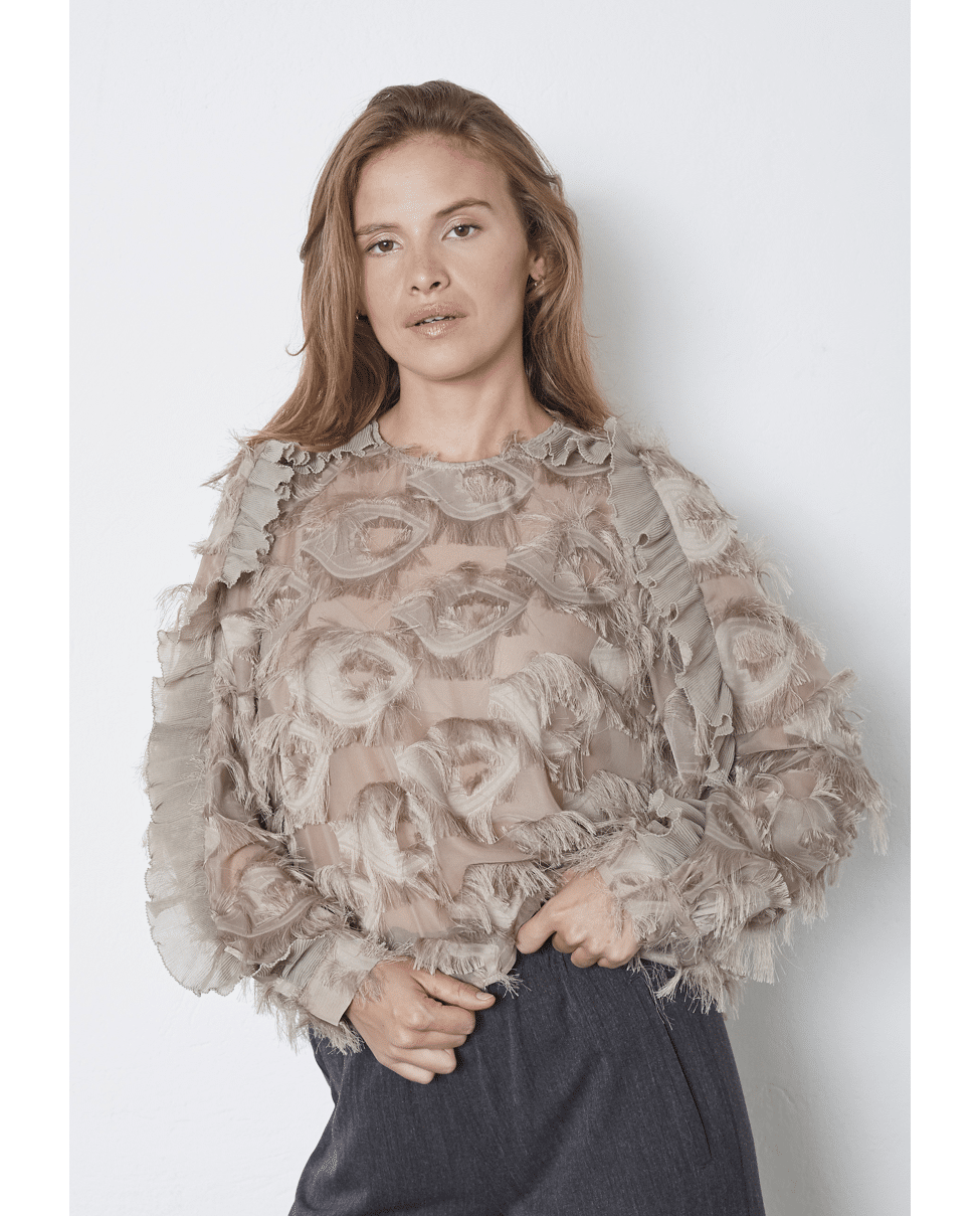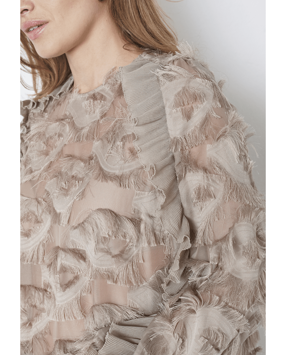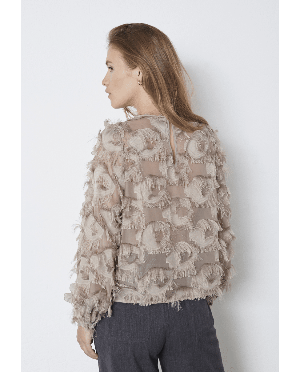 • Transparante blousetop met 3D-fringed structuur
