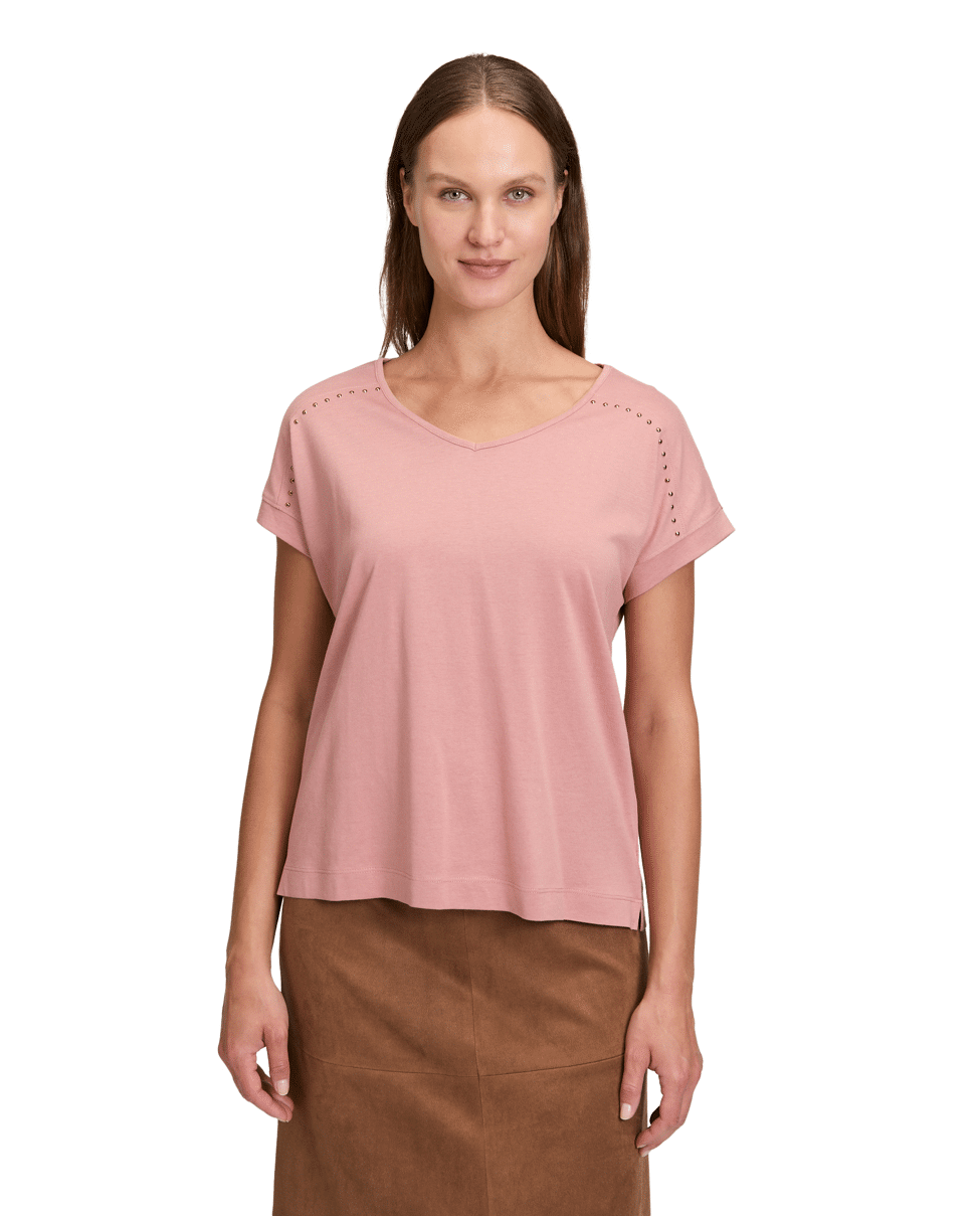 Dames T-shirt van Betty Barclay met studs op de schouders, V-hals en korte mouwen