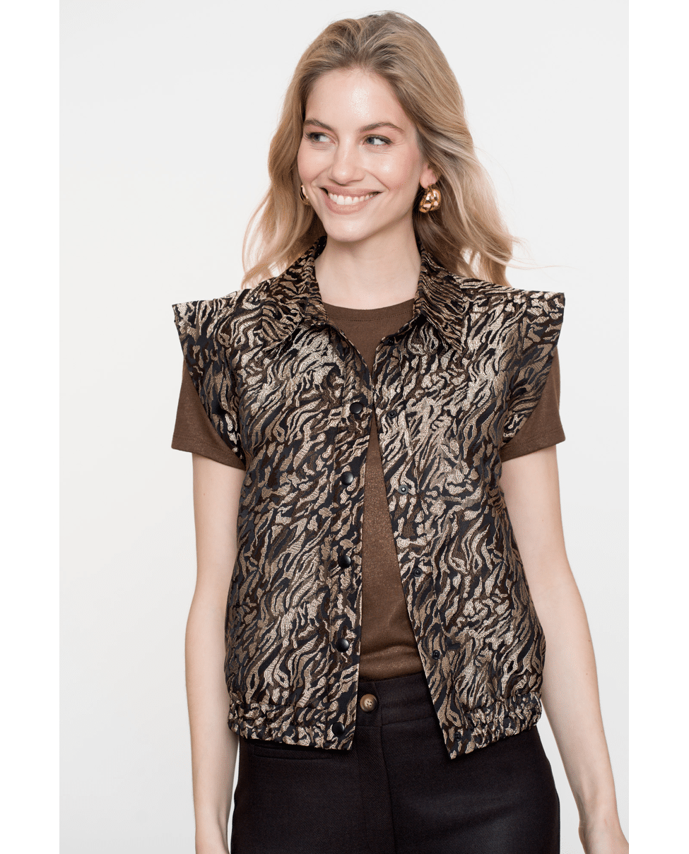 Een T-shirt met subtiele metallic glans. Dit veelzijdige shirt is perfect voor zowel casual als feestelijke combinaties.
