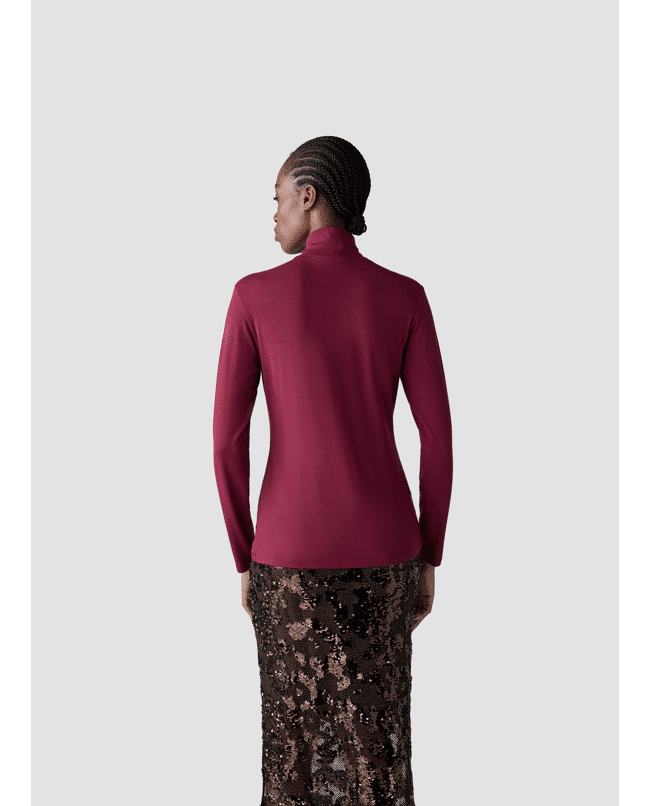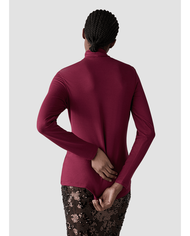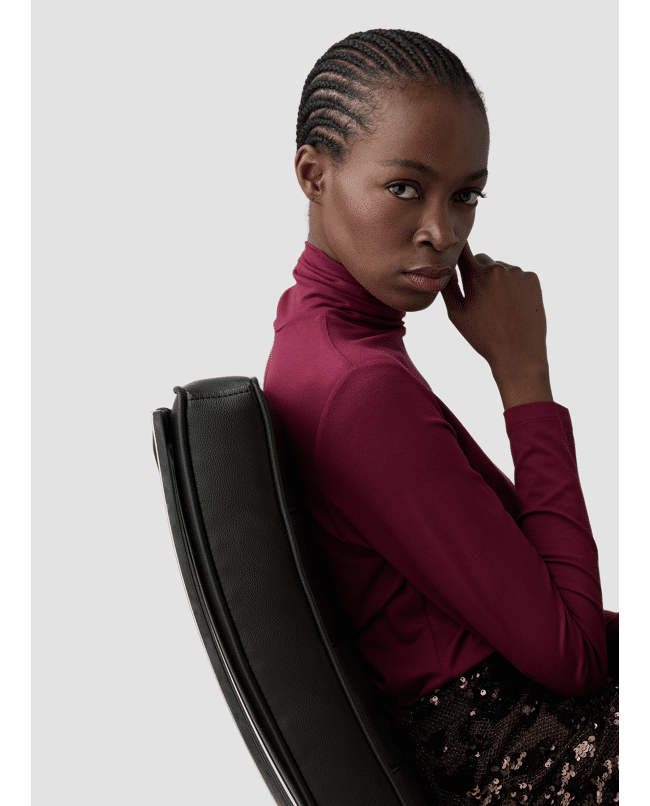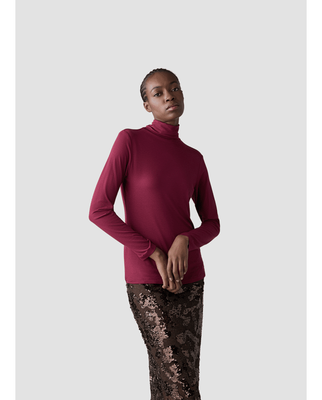 Deze coltop met lange mouwen van LCMT is een stijlvolle basic voor het najaar. Gemaakt van zachte viscosemix en uitgevoerd in een diepe roodtint — perfect voor onder blazers of op zichzelf bij een jeans of pantalon.
