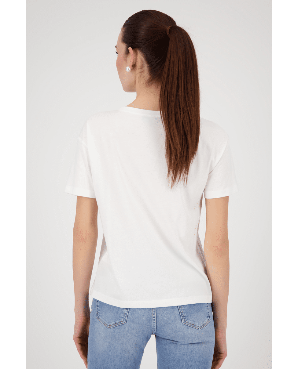 De minimalistische print en zachte stof maken dit T-shirt een comfortabele statement piece.