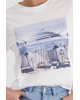 Dit witte dames T-shirt met beach print geeft direct een zomers gevoel. Perfect voor casual dagen, vakanties of een relaxte city look.
