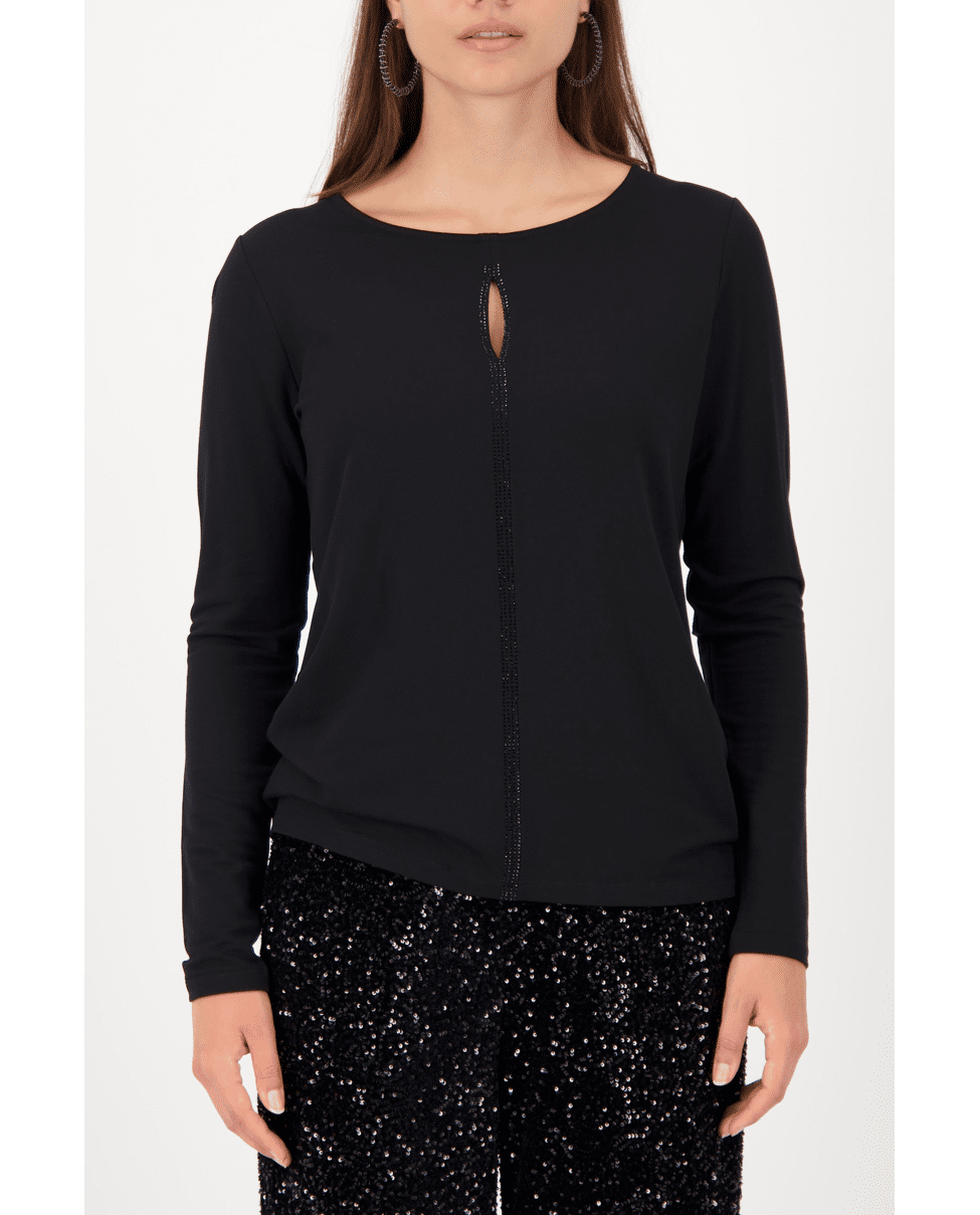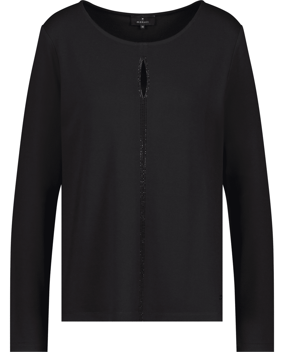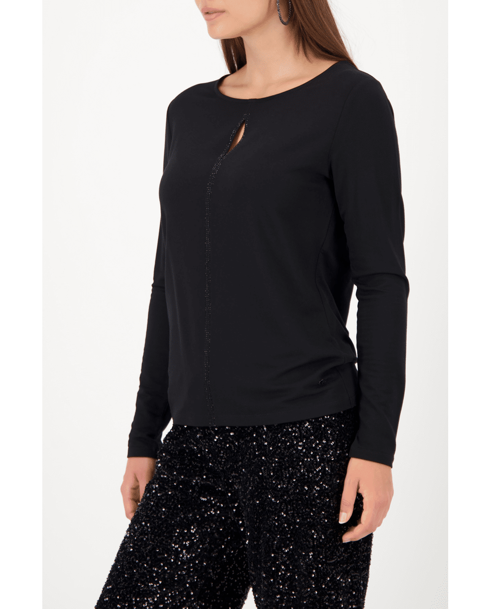 Shirt met lange mouwen, keyhole cut-out en verfijnde bies met strassteentjes. Een subtiele eyecatcher voor feestelijke gelegenheden of een avondje uit.