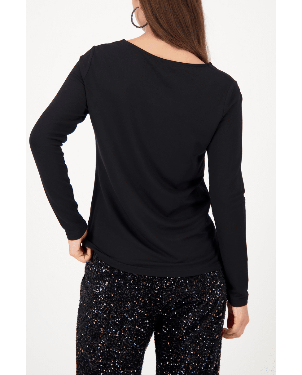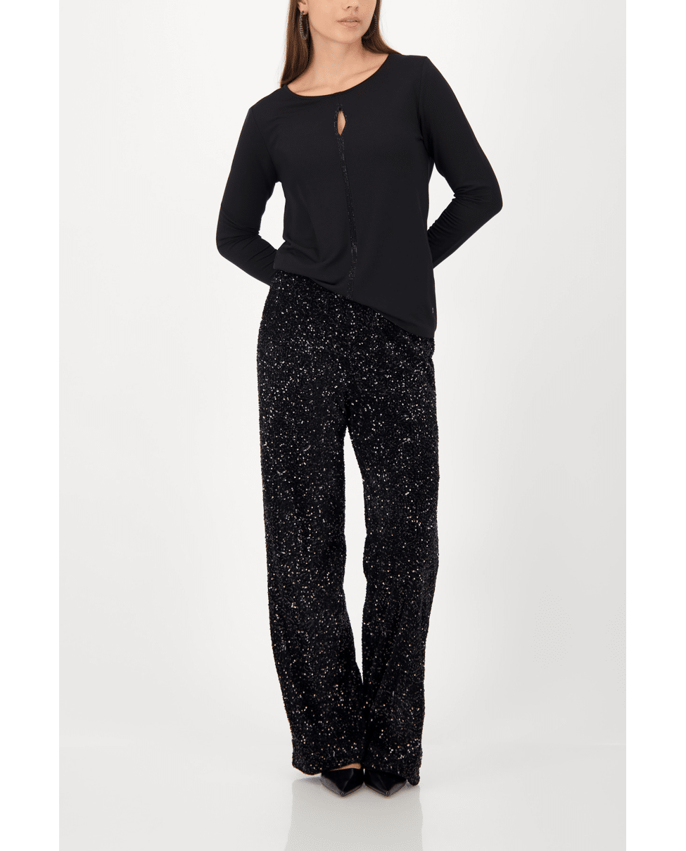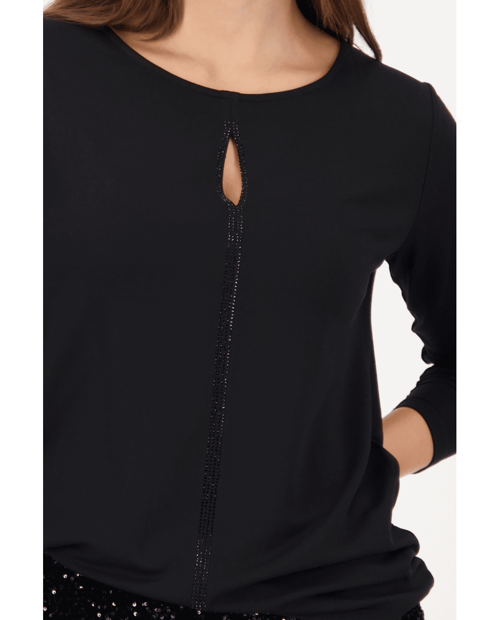 Shirt met lange mouwen, keyhole cut-out en verfijnde bies met strassteentjes. Een subtiele eyecatcher voor feestelijke gelegenheden of een avondje uit.