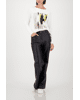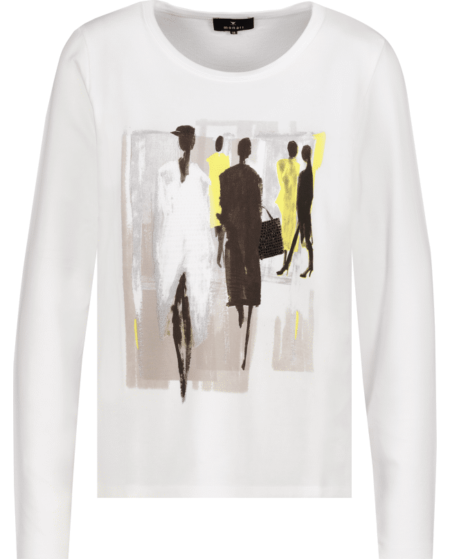 De grafische print met silhouetten geeft een kunstzinnige twist aan een basic shirt. Mooi op een coated broek of rok.