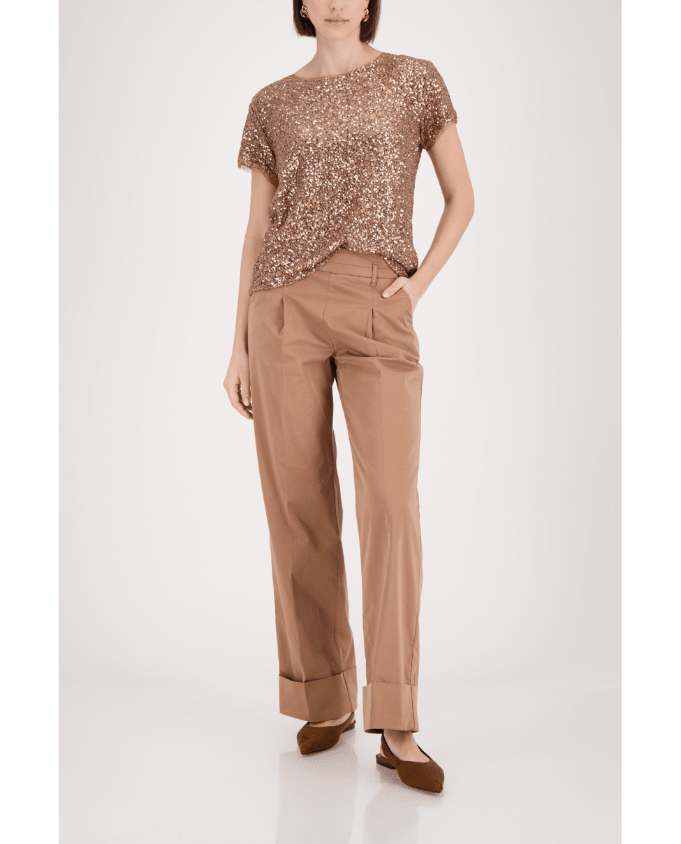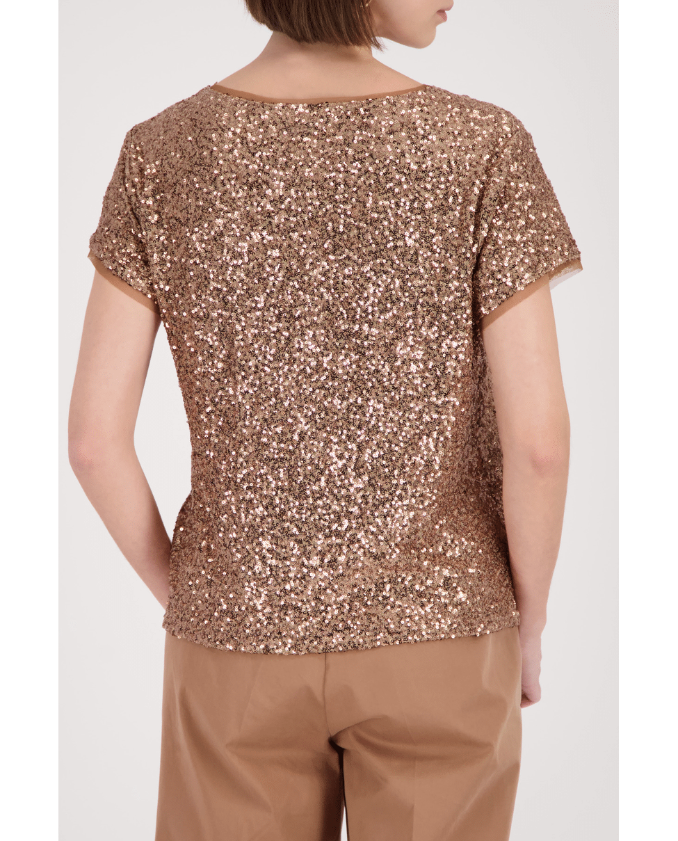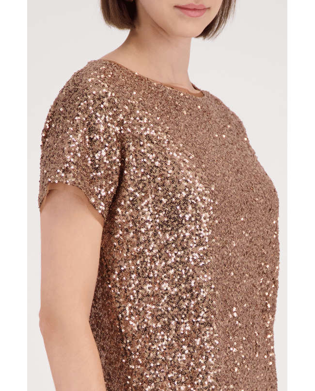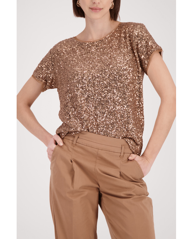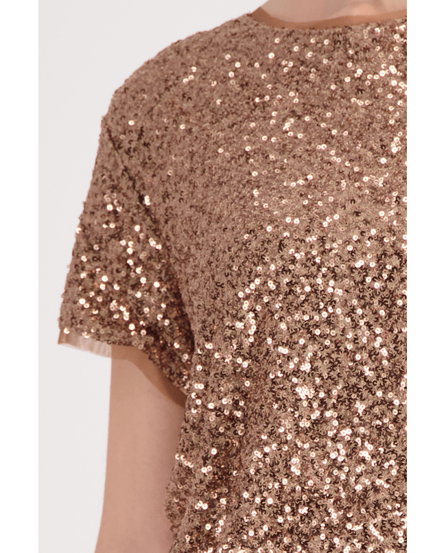 Dit pailletten T-shirt geeft je outfit direct een feestelijke touch, zonder in te leveren op comfort. Perfect voor een avondje uit of om je dagelijkse look net wat meer glans te geven.