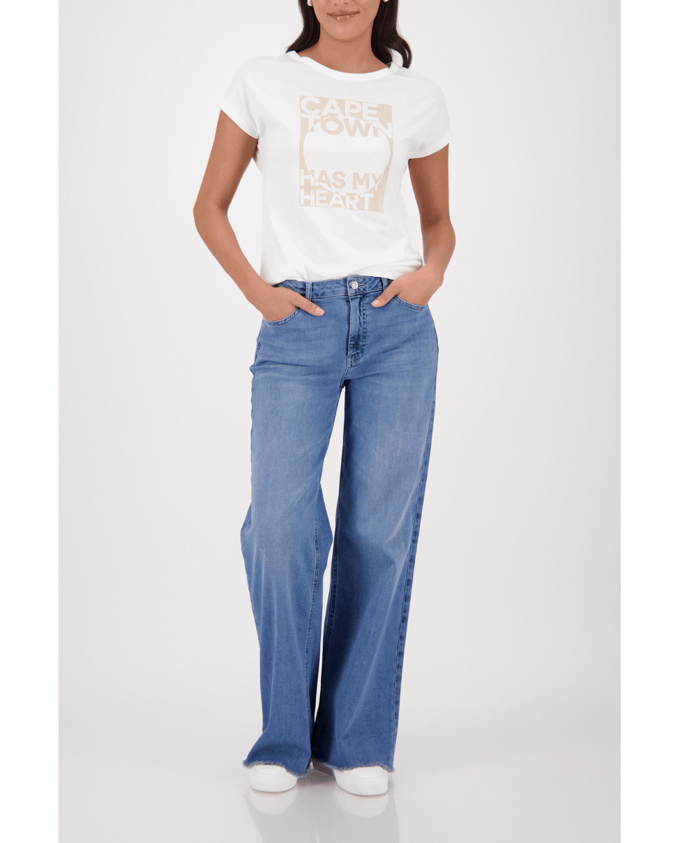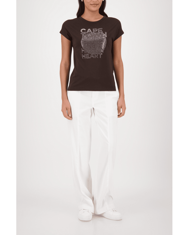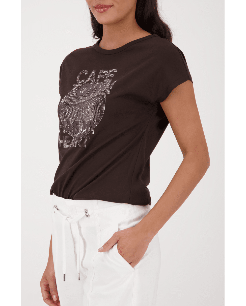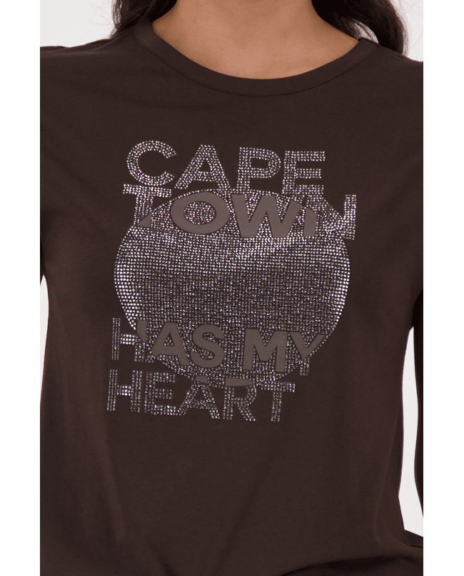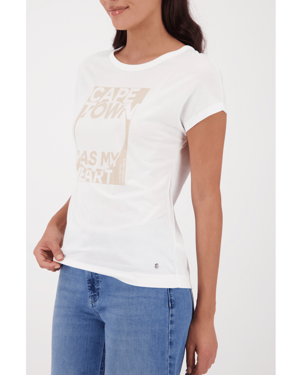 Dames T-shirt van Monari met print van glitters en tekst “Cape town has my heart”, ronde hals en korte mouwen