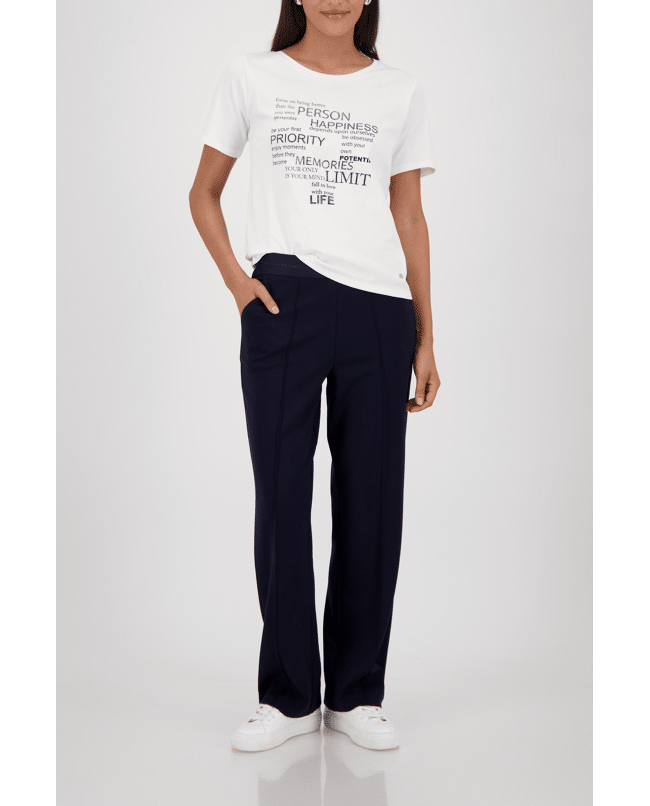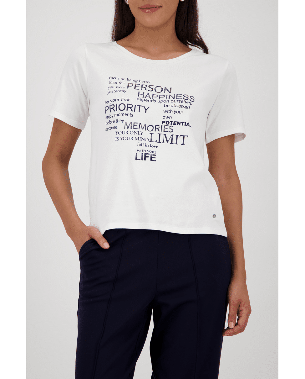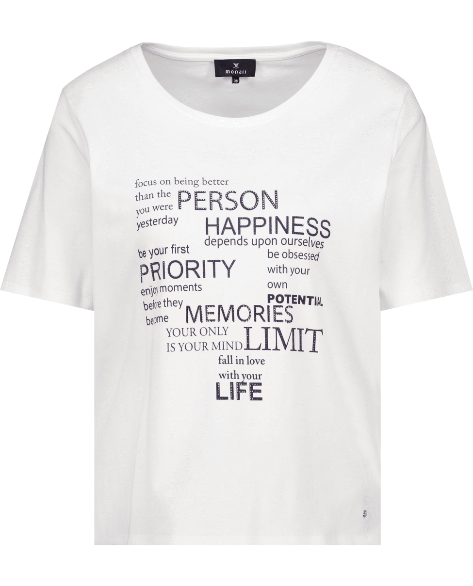 Dames T-shirt van Monari met strassteentjes en tekstprint, ronde hals en korte mouwen
