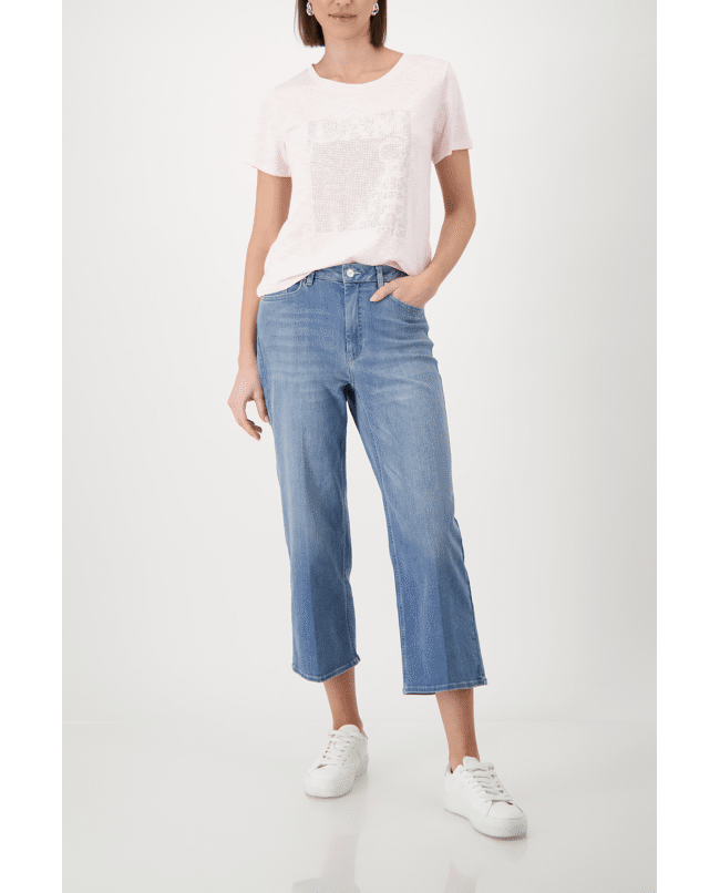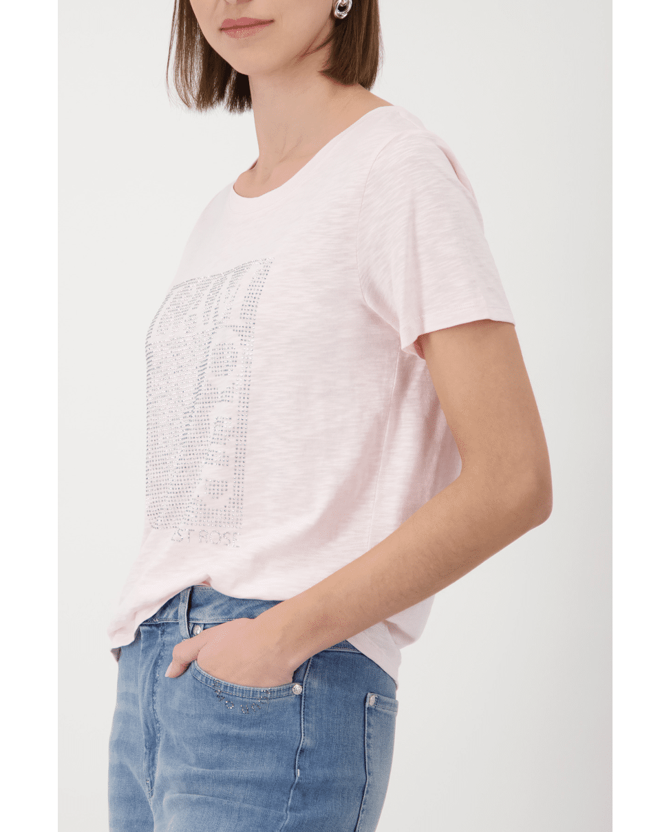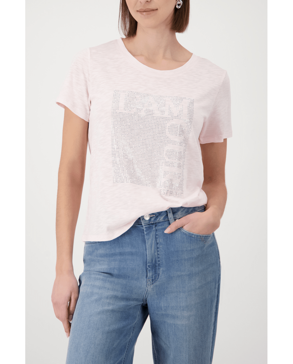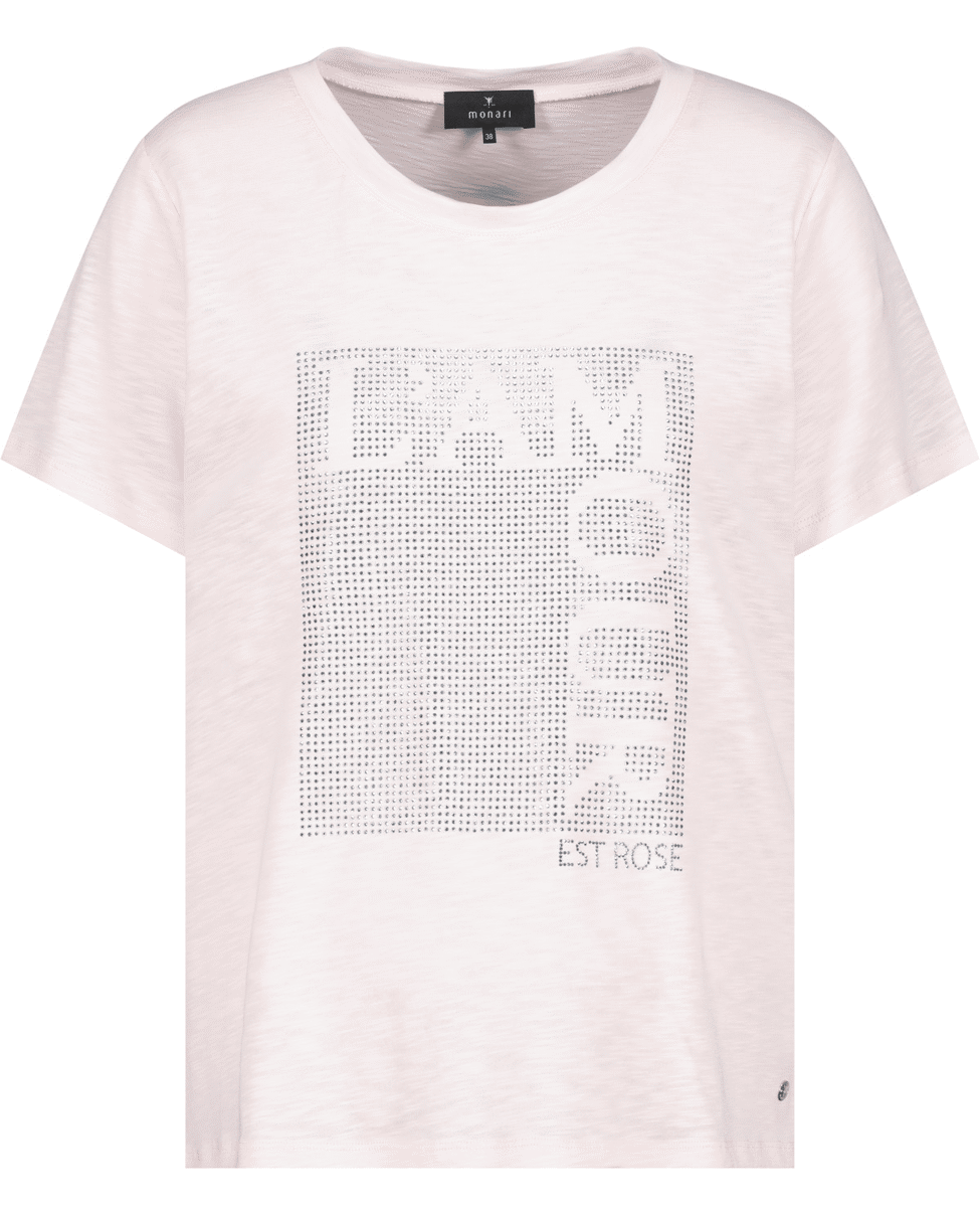 Dames T-shirt van Monari met strasstenen, ronde hals en korte mouwen