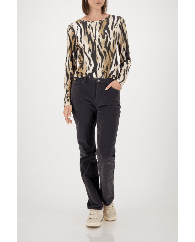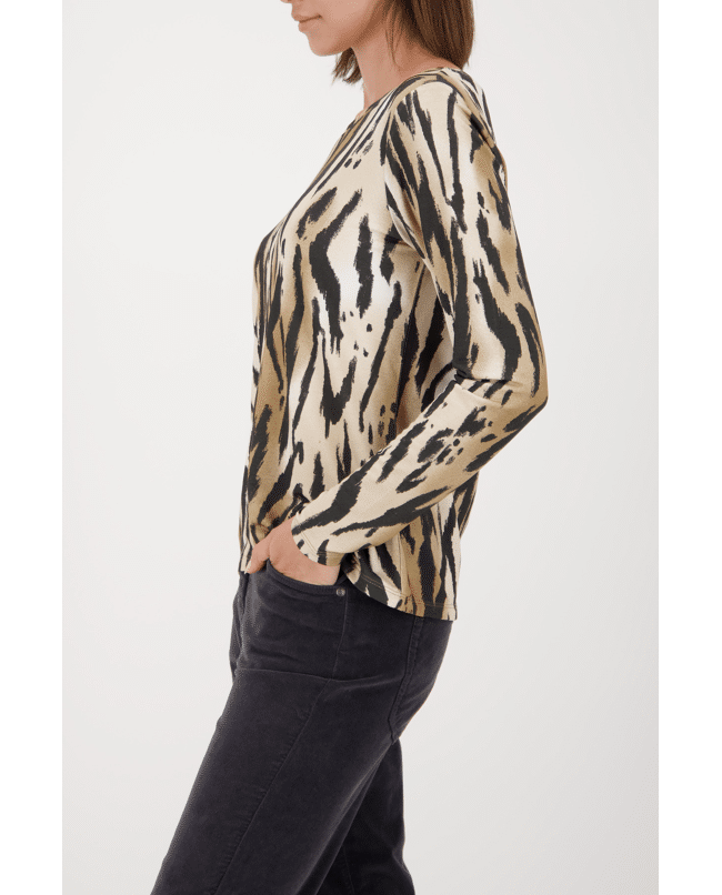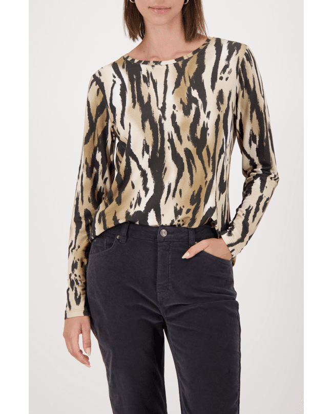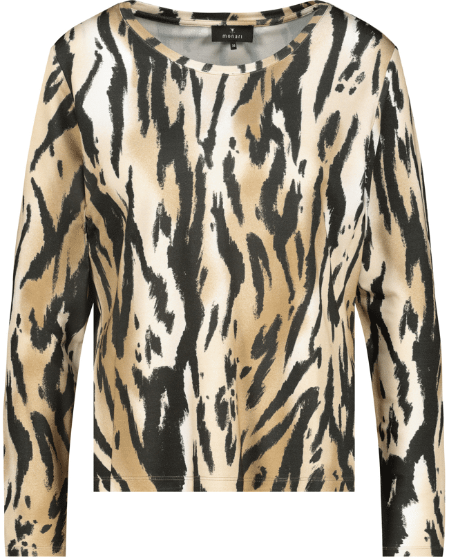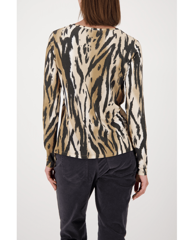 Dames T-shirt van Monari met tijgerprint, ronde hals en lange mouwen