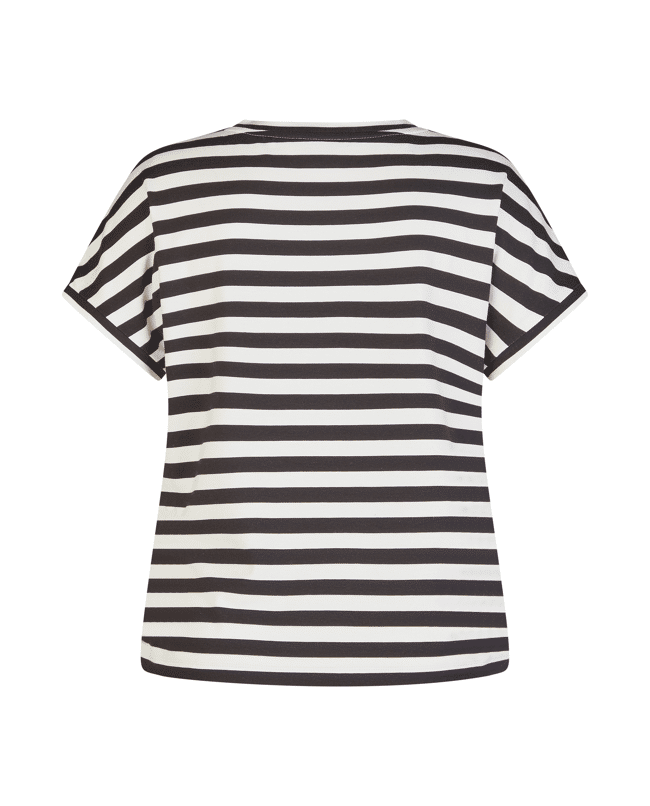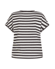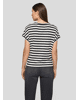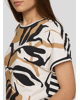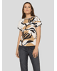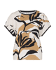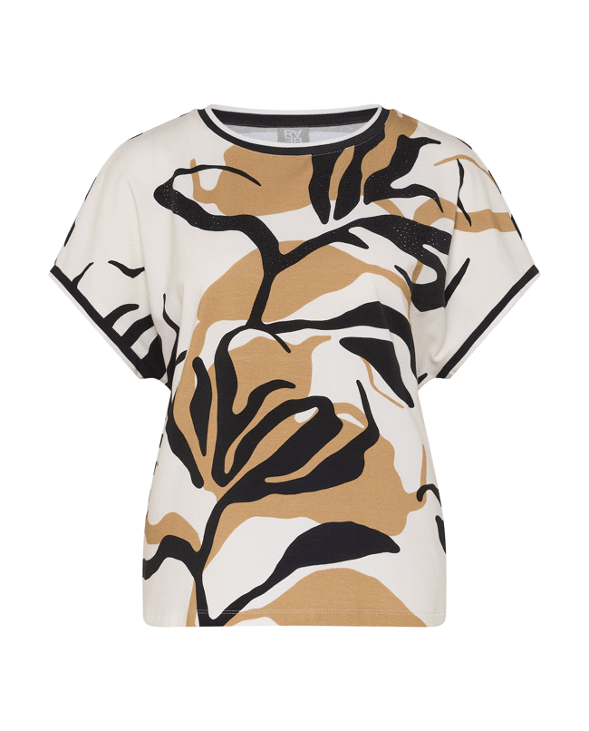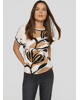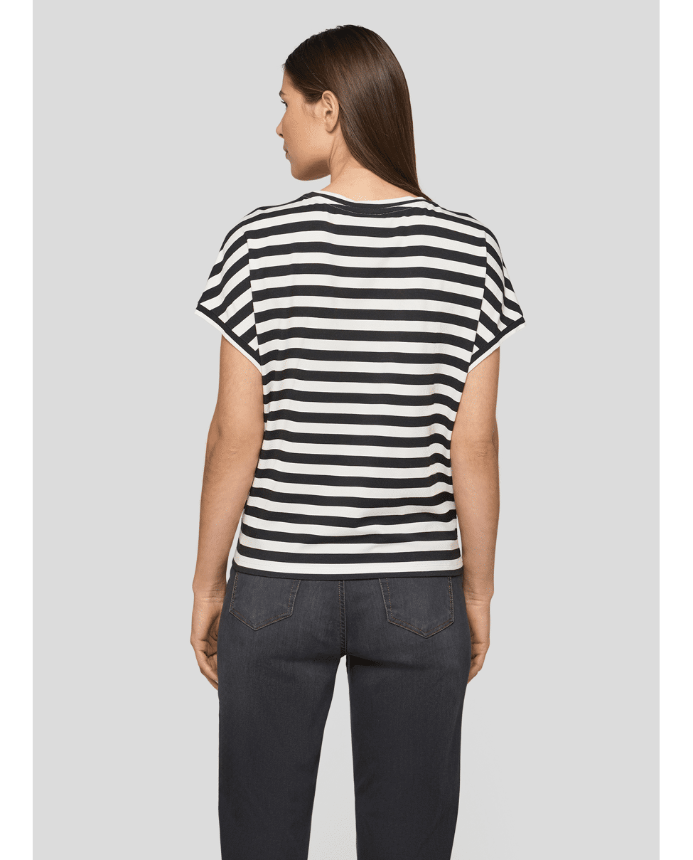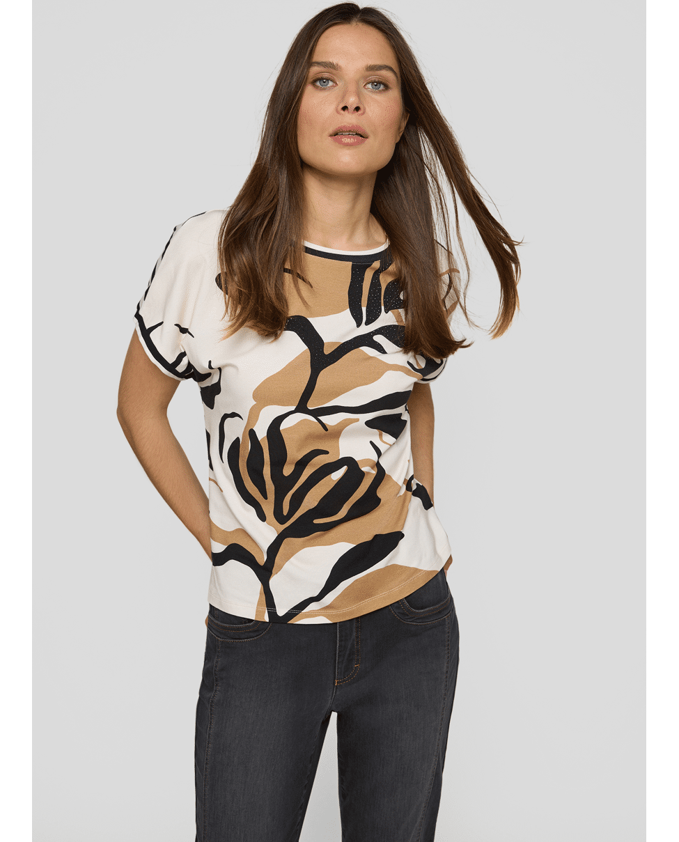 Dames T-shirt van Rabe met abstracte bladprint en siersteentjes, achterkant is gestreept, ronde hals en korte mouwen