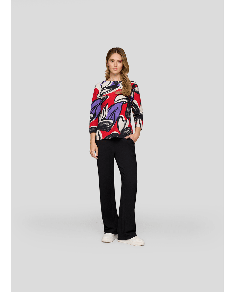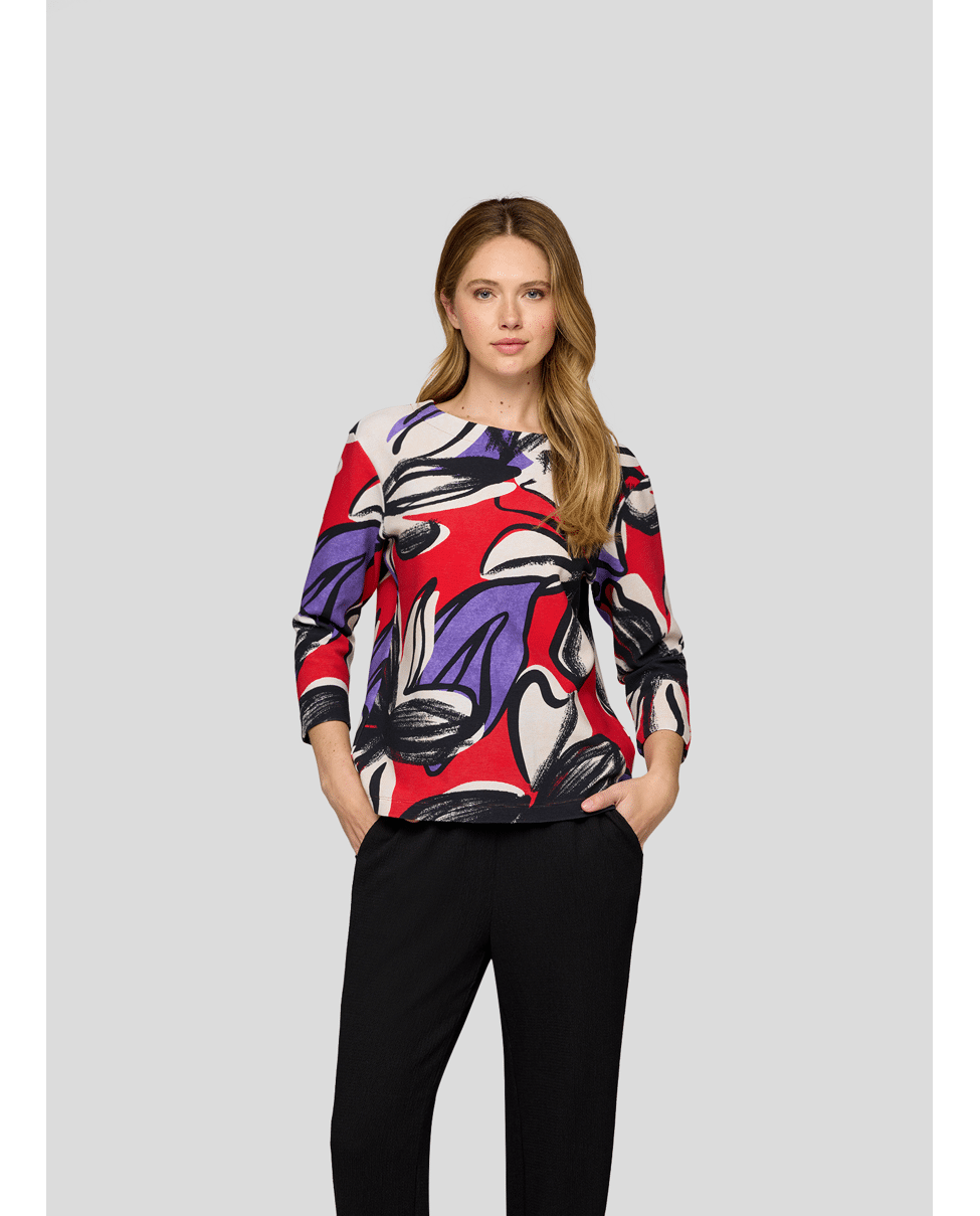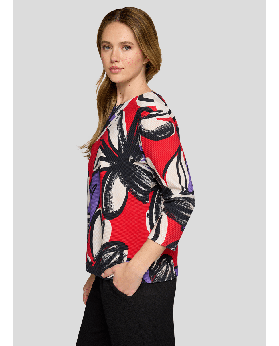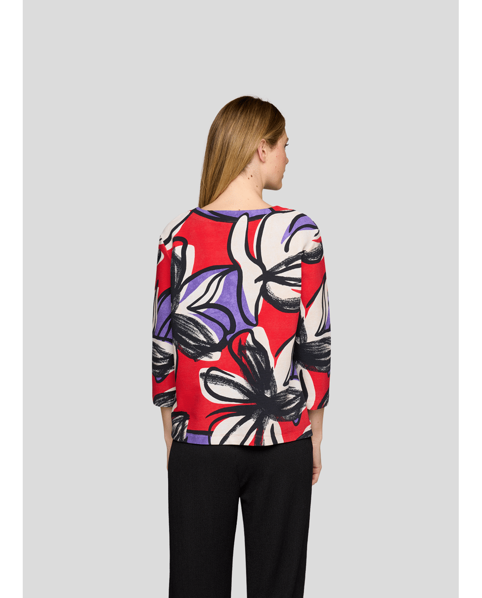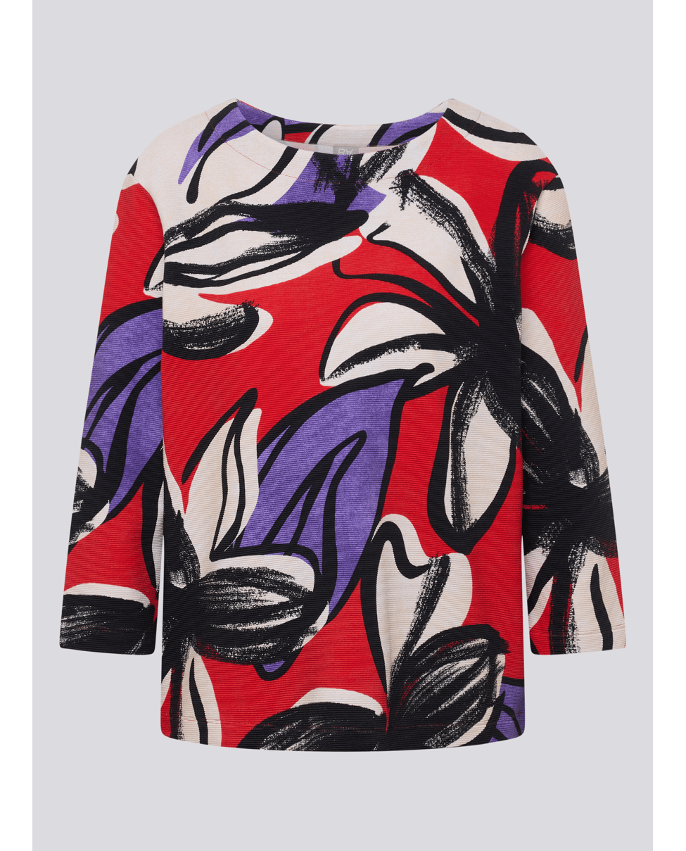 Dames T-shirt van Rabe met abstracte bloemenprint, ronde hals en 3/4 mouwen