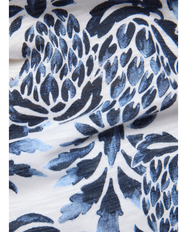 •All-over botanische print in frisse blauwtinten