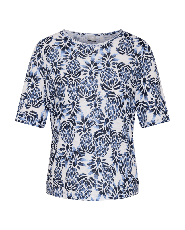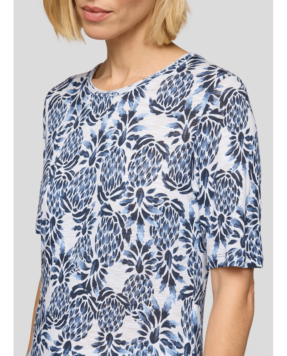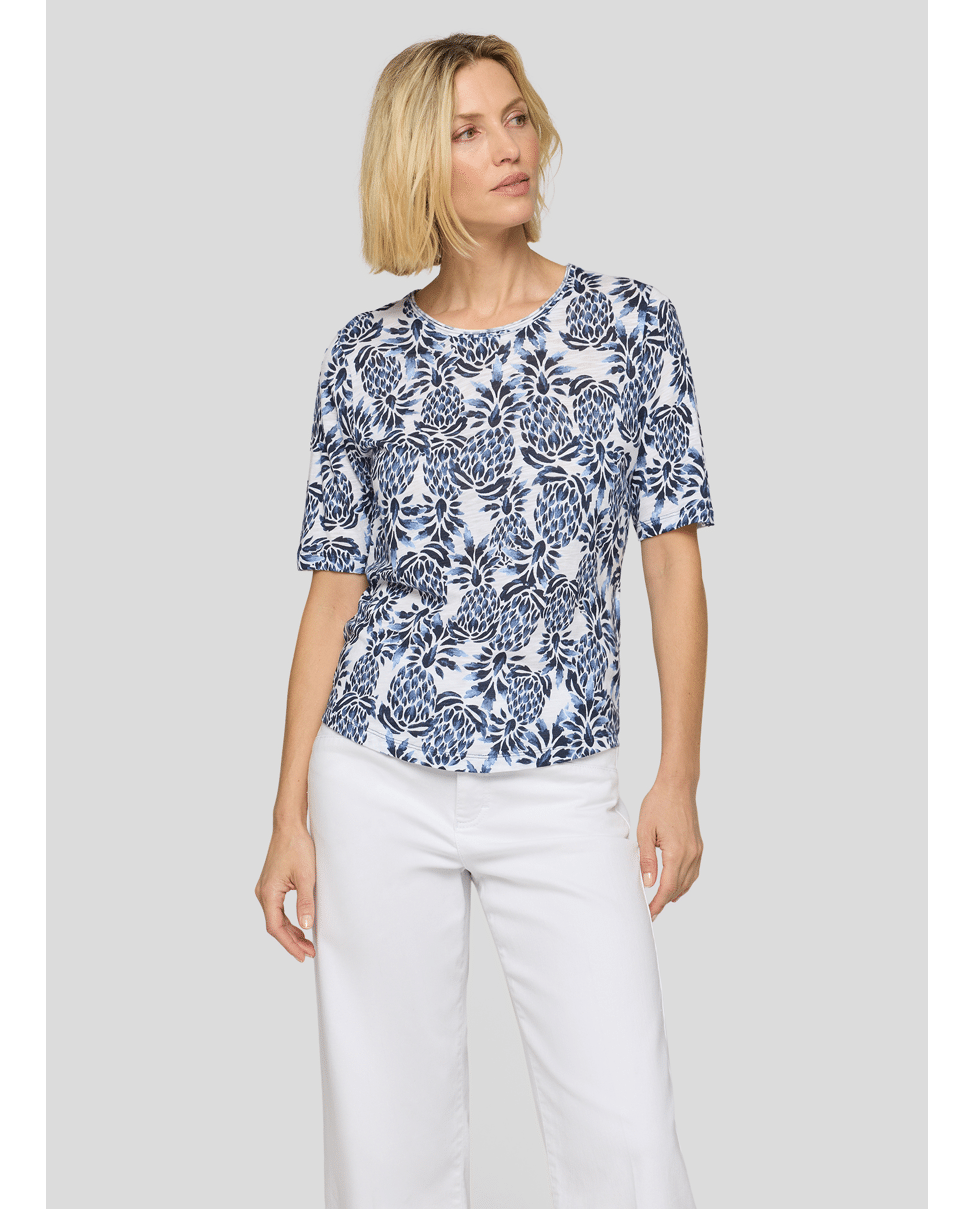 Dames T-shirt van Rabe met tropische print, ronde halslijn en korte mouwen