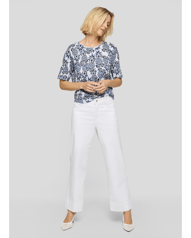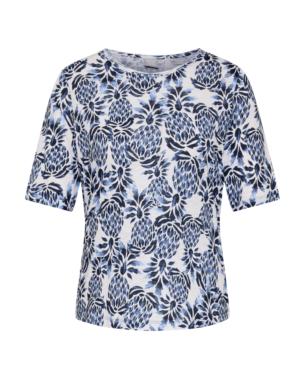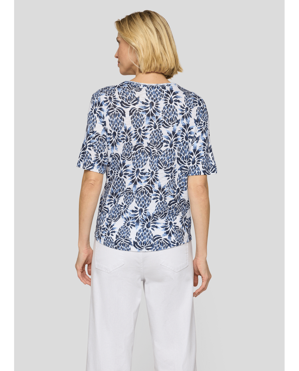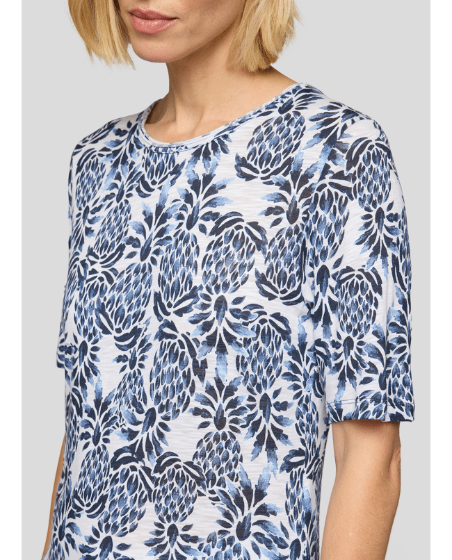 Dames T-shirt van Rabe met tropische print, ronde halslijn en korte mouwen