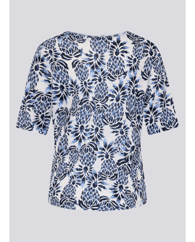Een fris T-shirt met een levendige print. Ideaal voor zomerse dagen of als stijlvolle basic onder een vest of jasje.