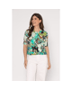 Deze dames blouson met ronde hals in A.Green-Mint painted flowers print geeft je outfit direct een frisse, zomerse uitstraling. De mix van mint, aqua en warme accenten maakt dit T-shirt een echte blikvanger voor het voorjaar en de zomer.