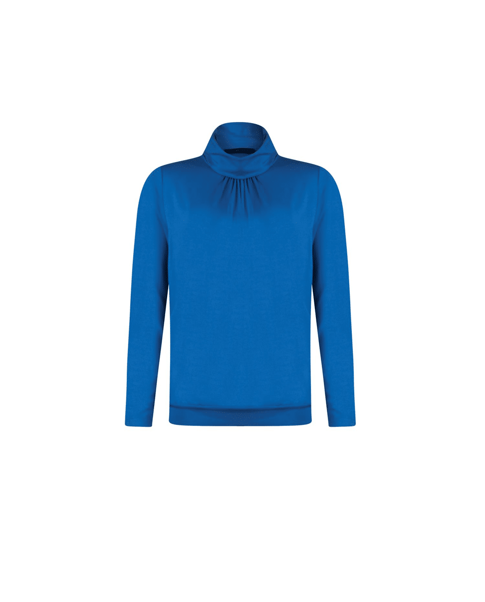 Dames T-shirt van Roberto Sarto met plooitjes aan de col, elastische brede zoom en lange mouwen