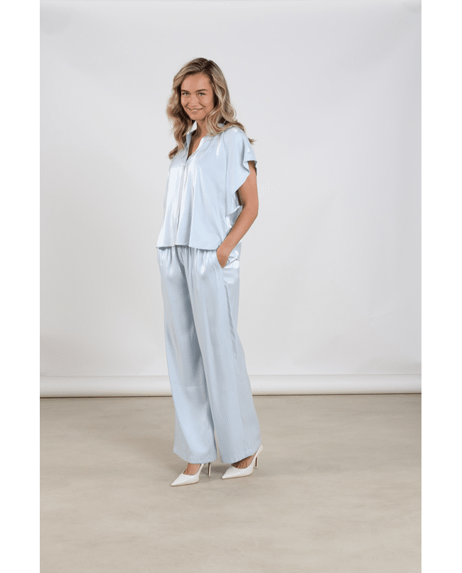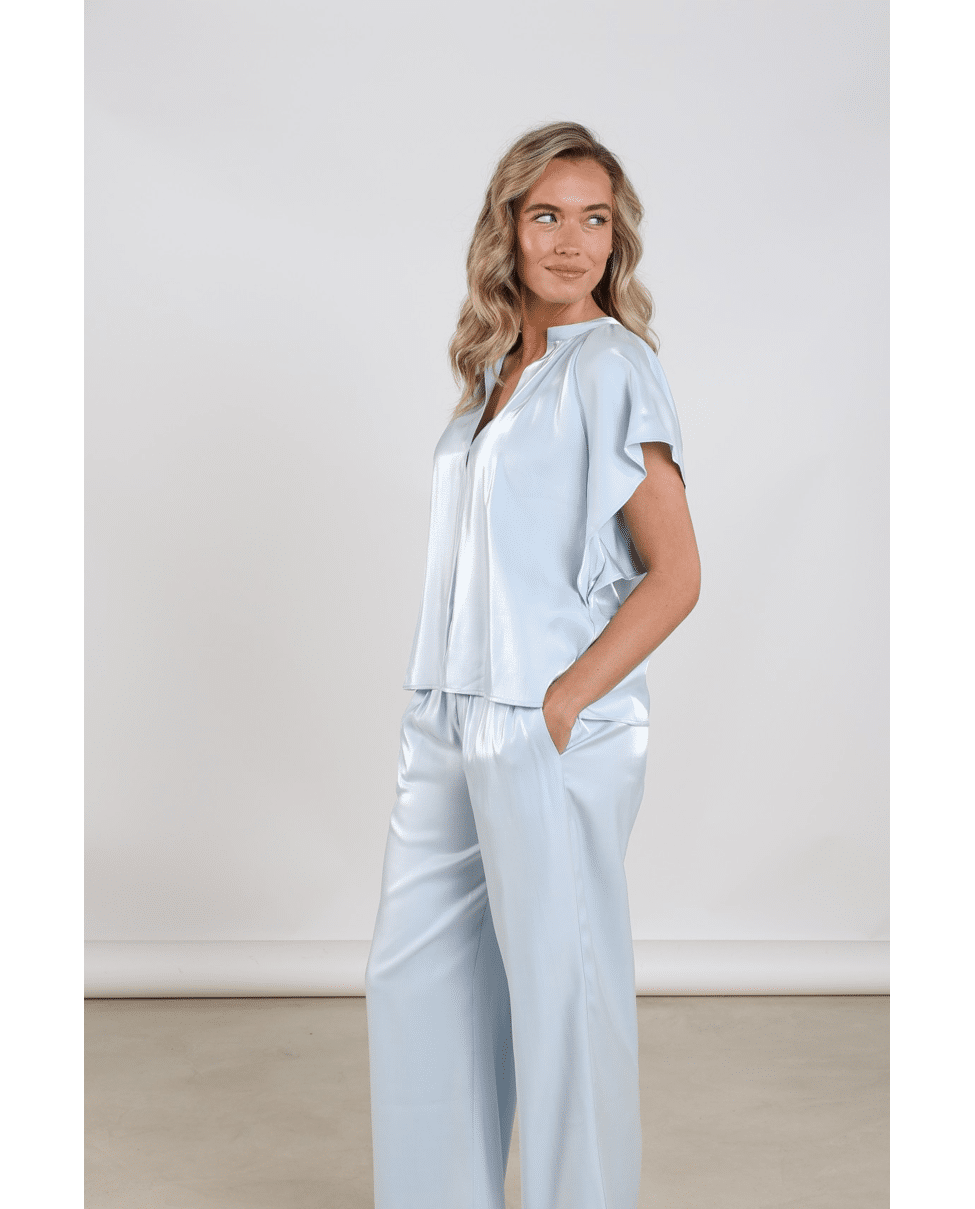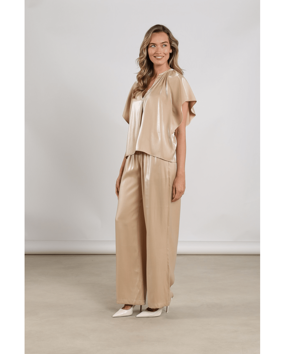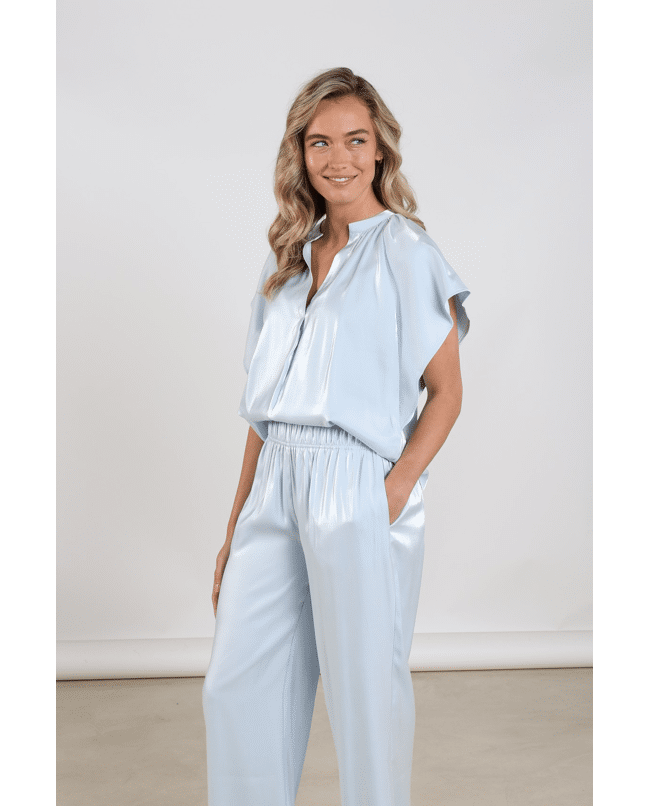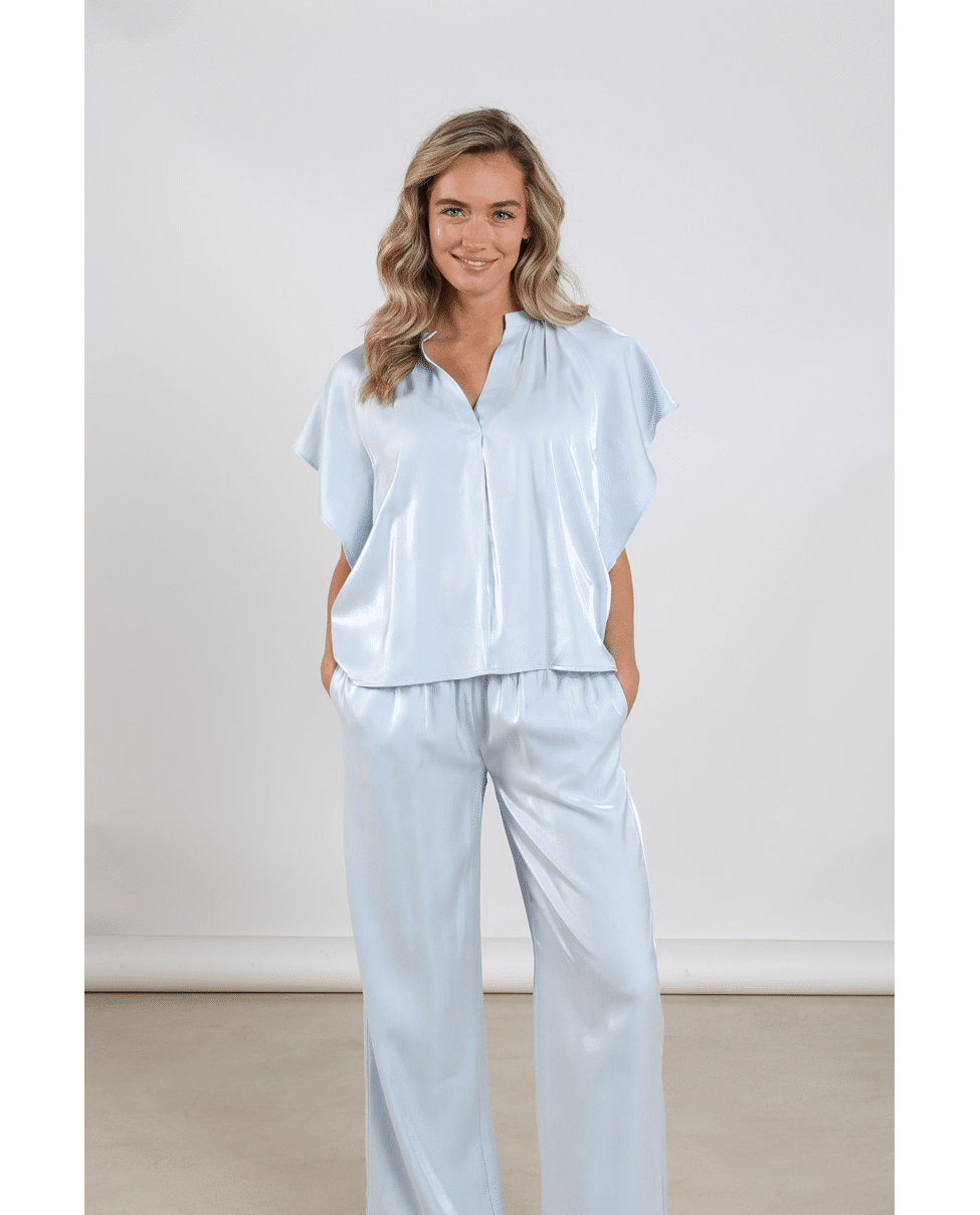 Deze Taylor Top Shiny van NUKUS is een elegante dames top met subtiele glans, perfect voor lente en zomer. De luchtige stof en wijde mouwen geven een vrouwelijke, verfijnde uitstraling die je moeiteloos draagt naar werk of diner. Het shiny materiaal geeft de Taylor top shiny een luxe uitstraling en perfect in combinatie met de Rubi pants shiny voor een stijlvolle set.