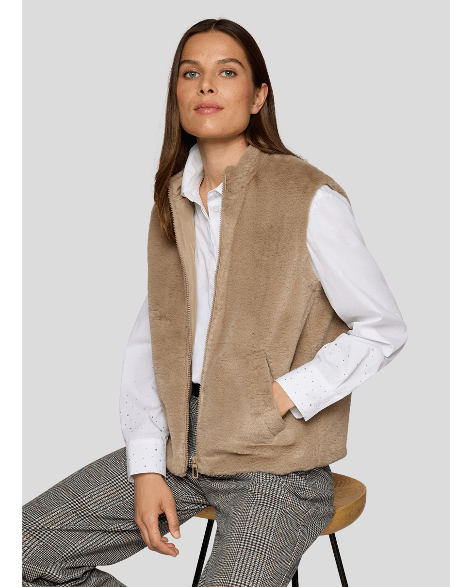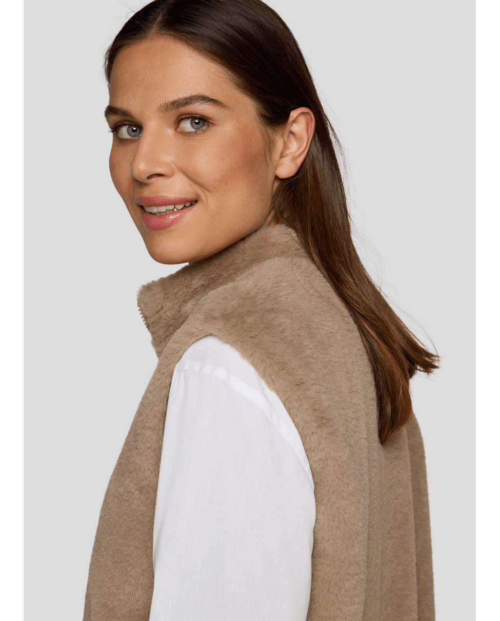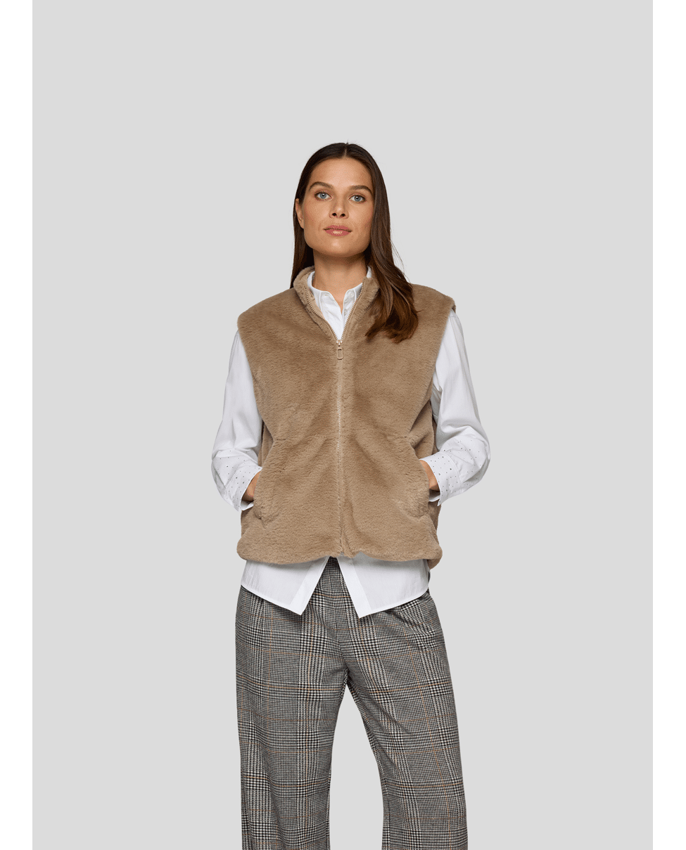 Dames teddy bodywarmer van Rabe met ritssluiting, steekzakken en opstaande kraag