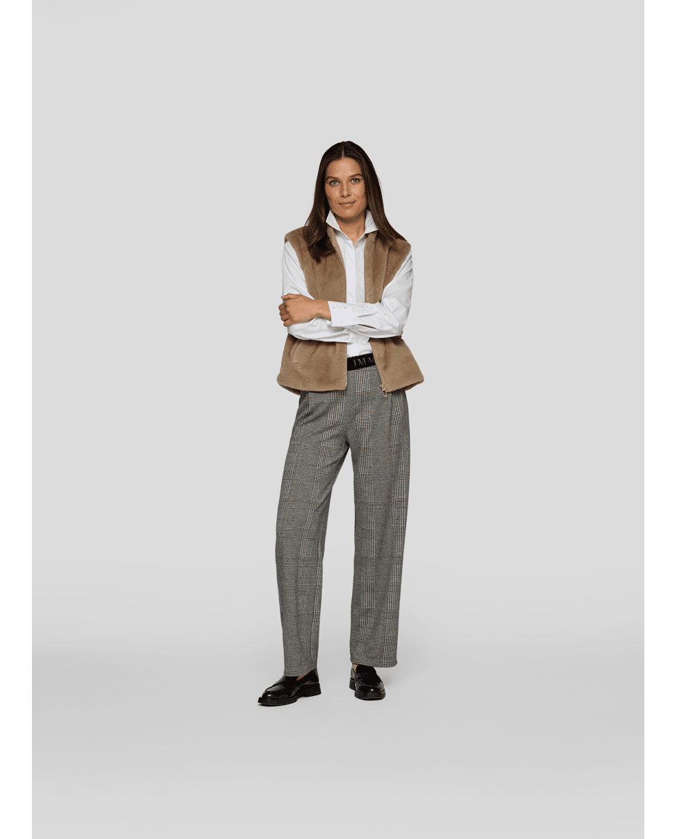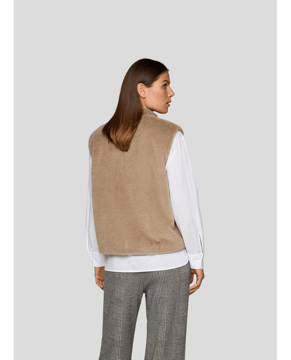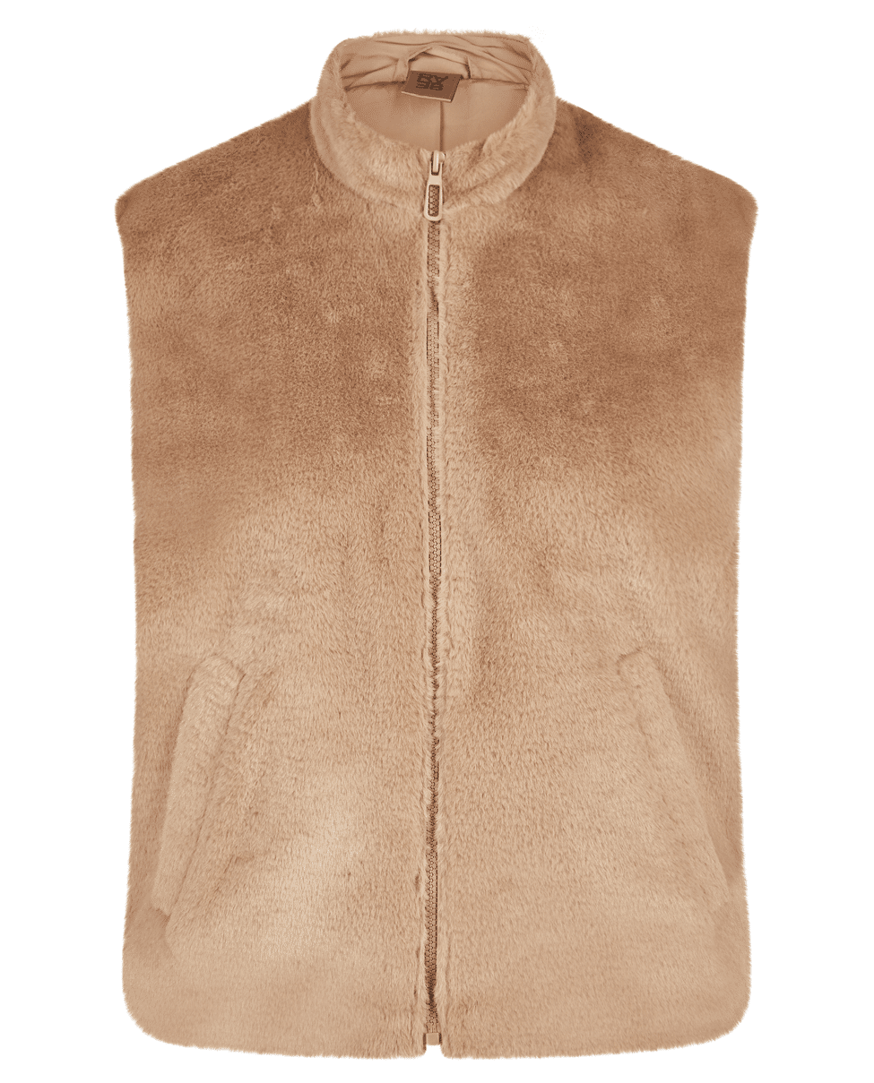Dames teddy bodywarmer van Rabe met ritssluiting, steekzakken en opstaande kraag